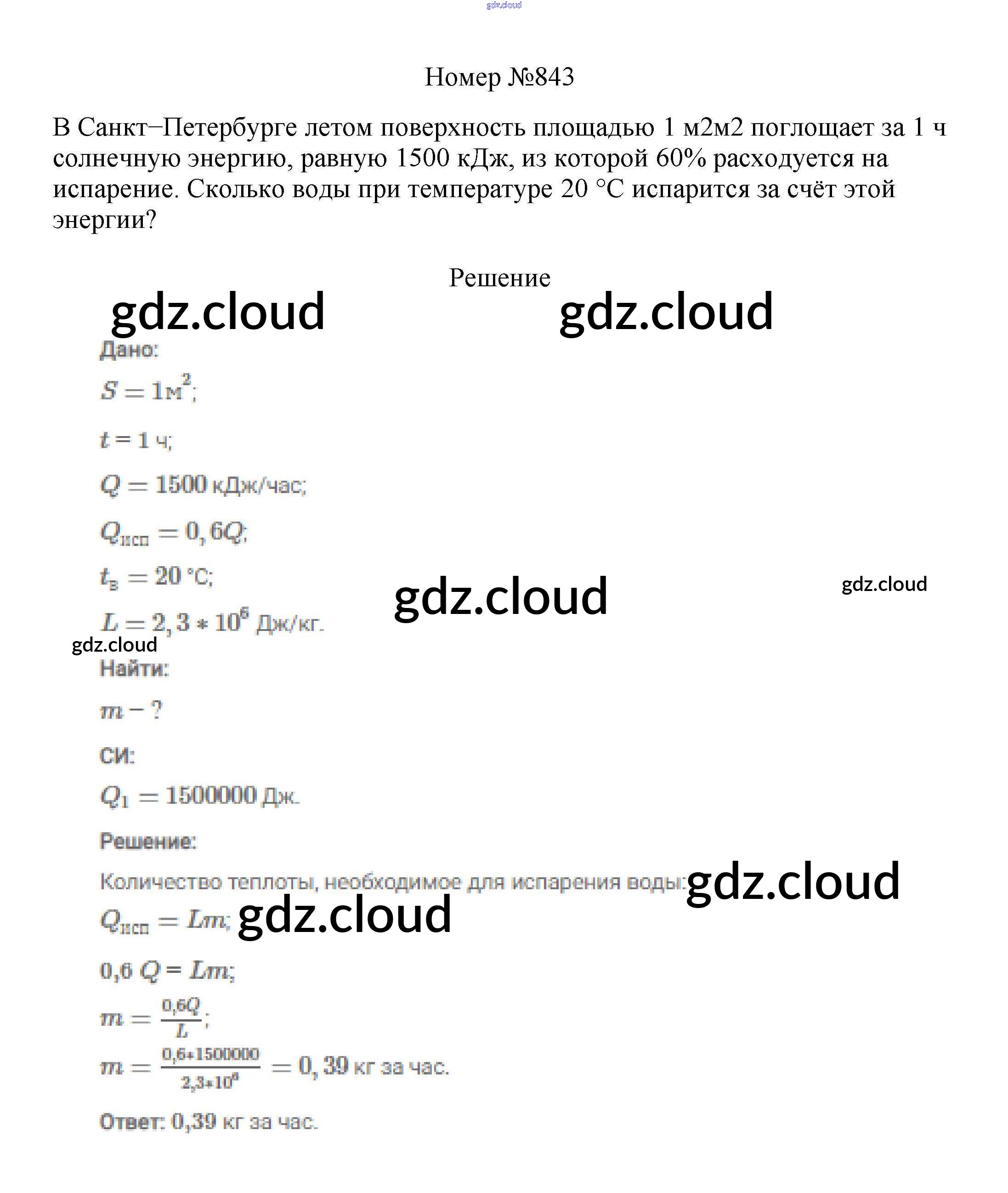 Ответ на задание 843 Сборник вопросов и задач Физика за 7, 8, 9 (седьмой, восьмой, девятый) класс Марон, Позойский Вертикаль 2013