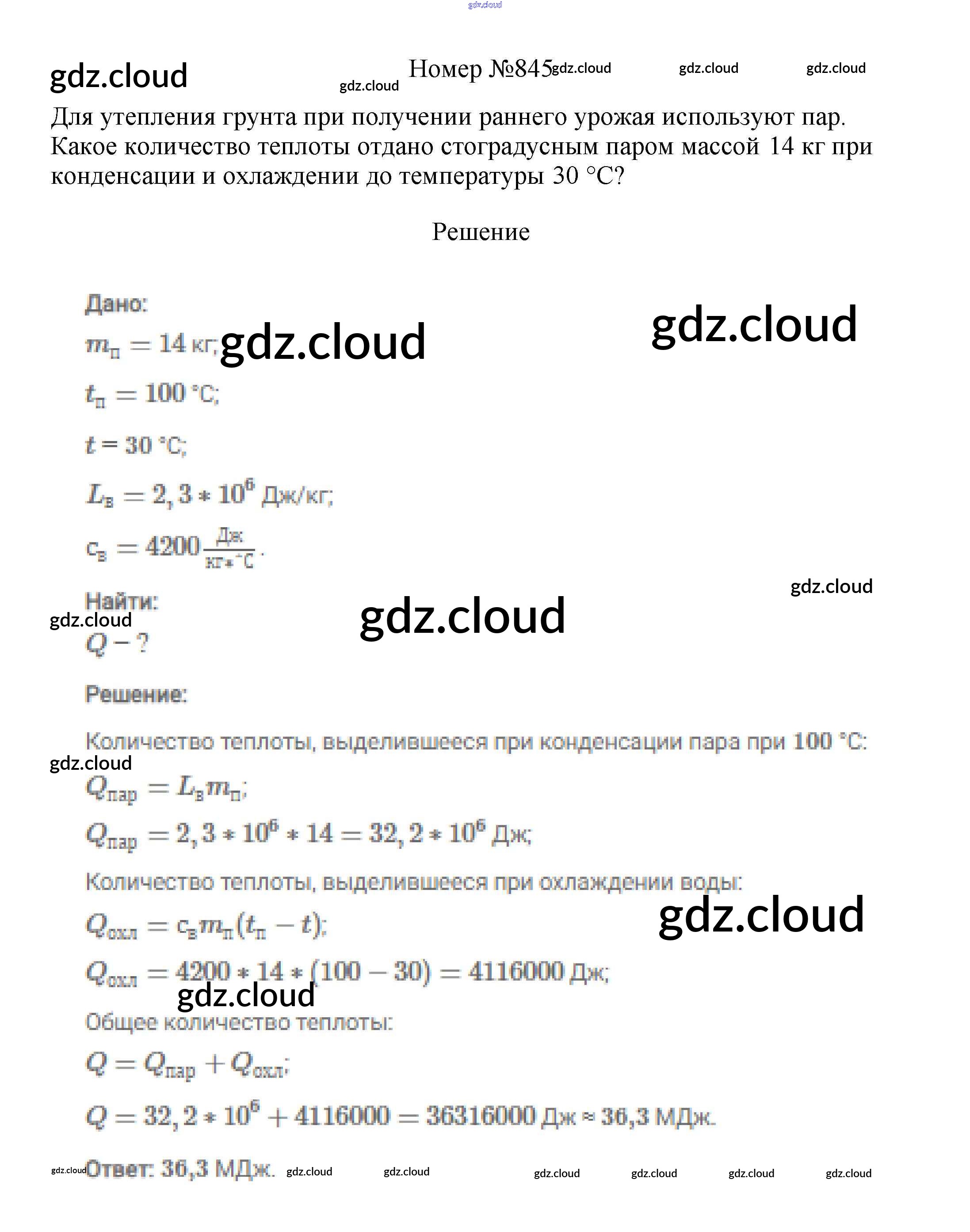 Ответ на задание 845 Сборник вопросов и задач Физика за 7, 8, 9 (седьмой, восьмой, девятый) класс Марон, Позойский Вертикаль 2013