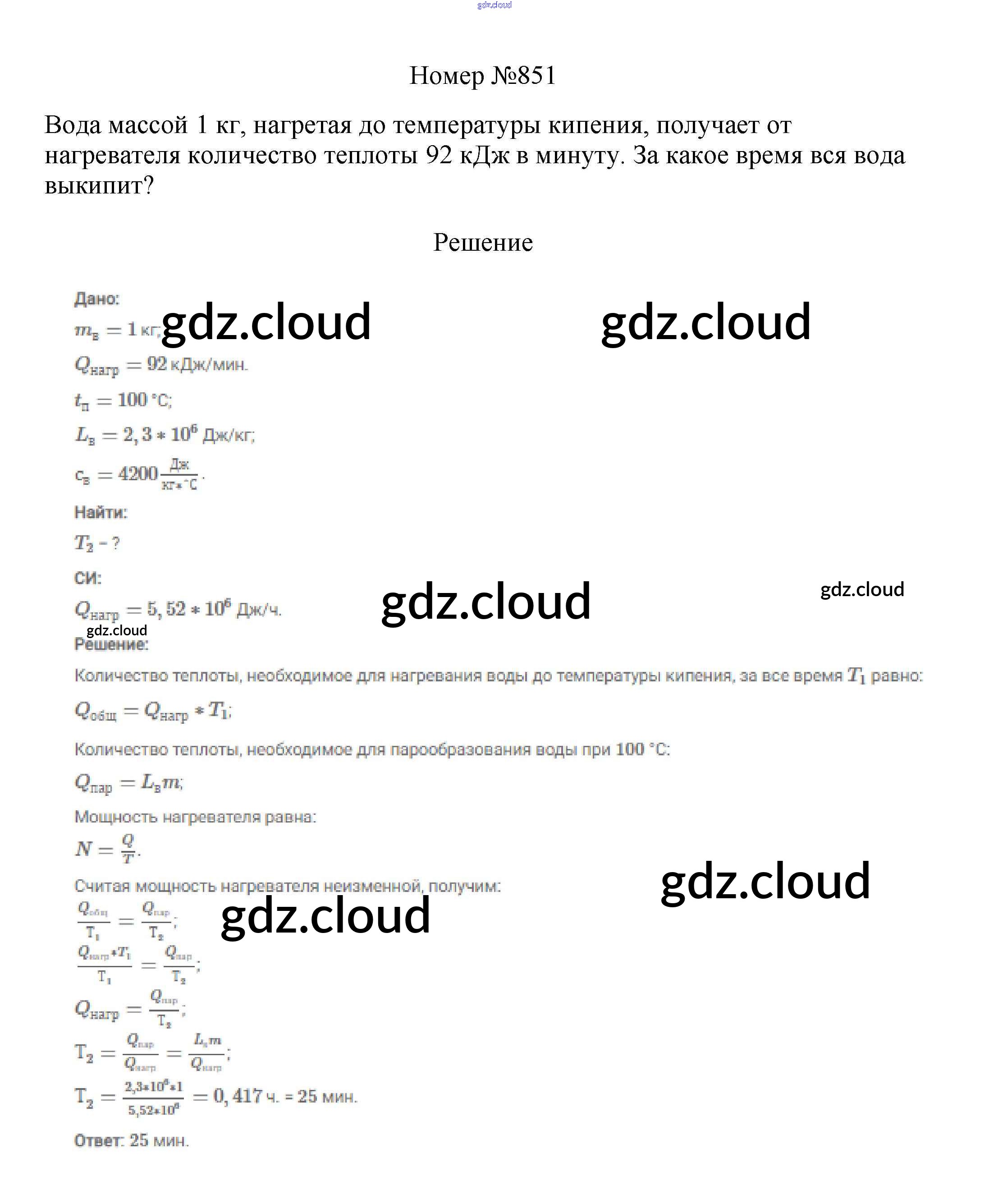 Ответ на задание 851 Сборник вопросов и задач Физика за 7, 8, 9 (седьмой, восьмой, девятый) класс Марон, Позойский Вертикаль 2013