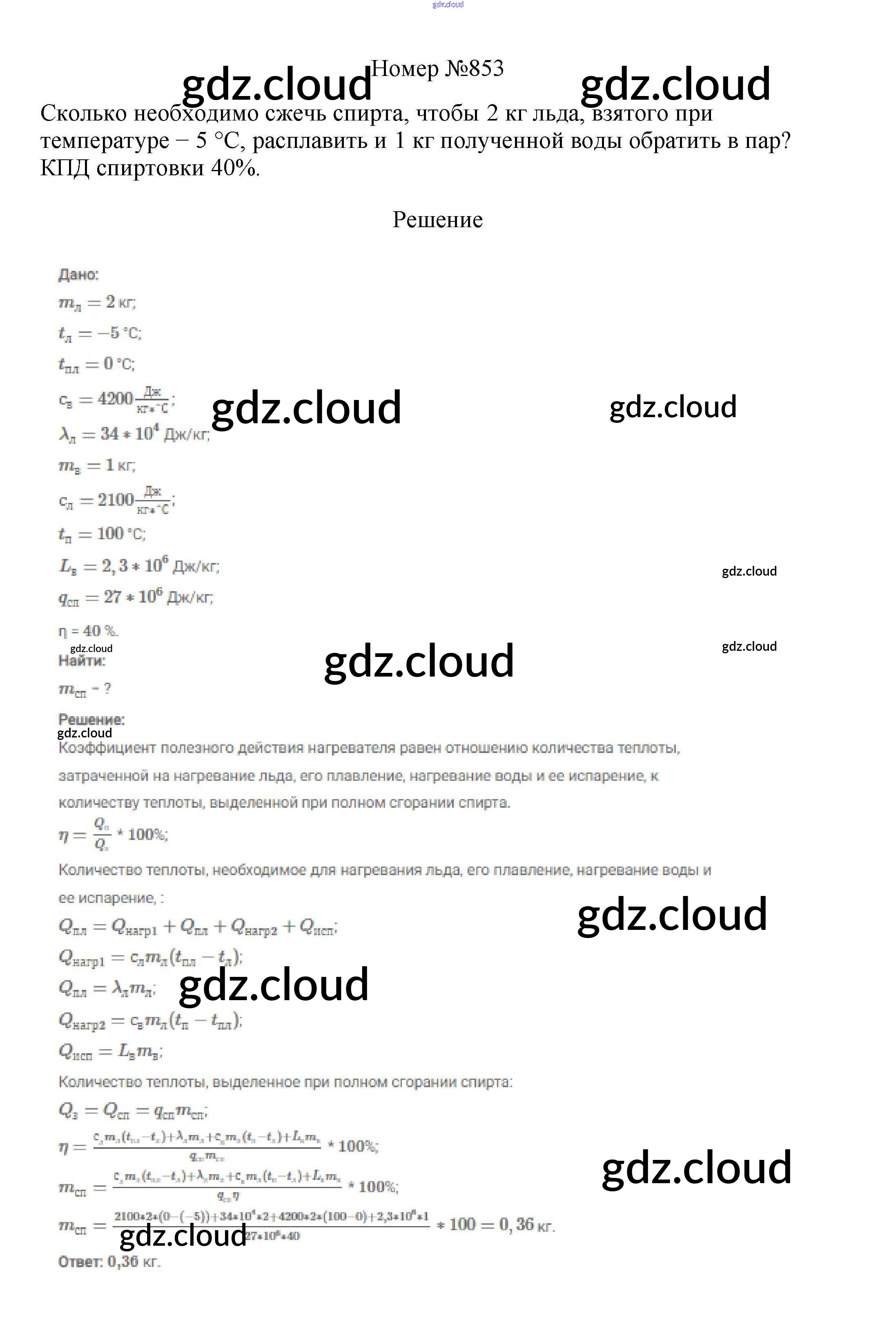 Ответ на задание 853 Сборник вопросов и задач Физика за 7, 8, 9 (седьмой, восьмой, девятый) класс Марон, Позойский Вертикаль 2013