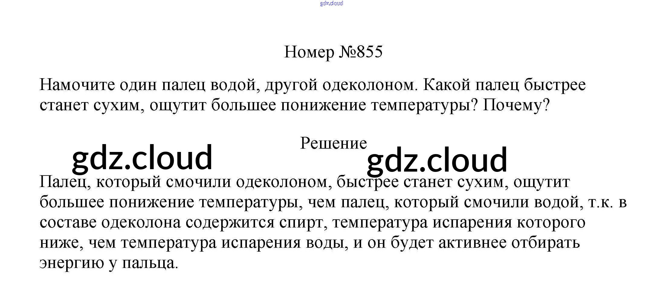 Ответ на задание 855 Сборник вопросов и задач Физика за 7, 8, 9 (седьмой, восьмой, девятый) класс Марон, Позойский Вертикаль 2013