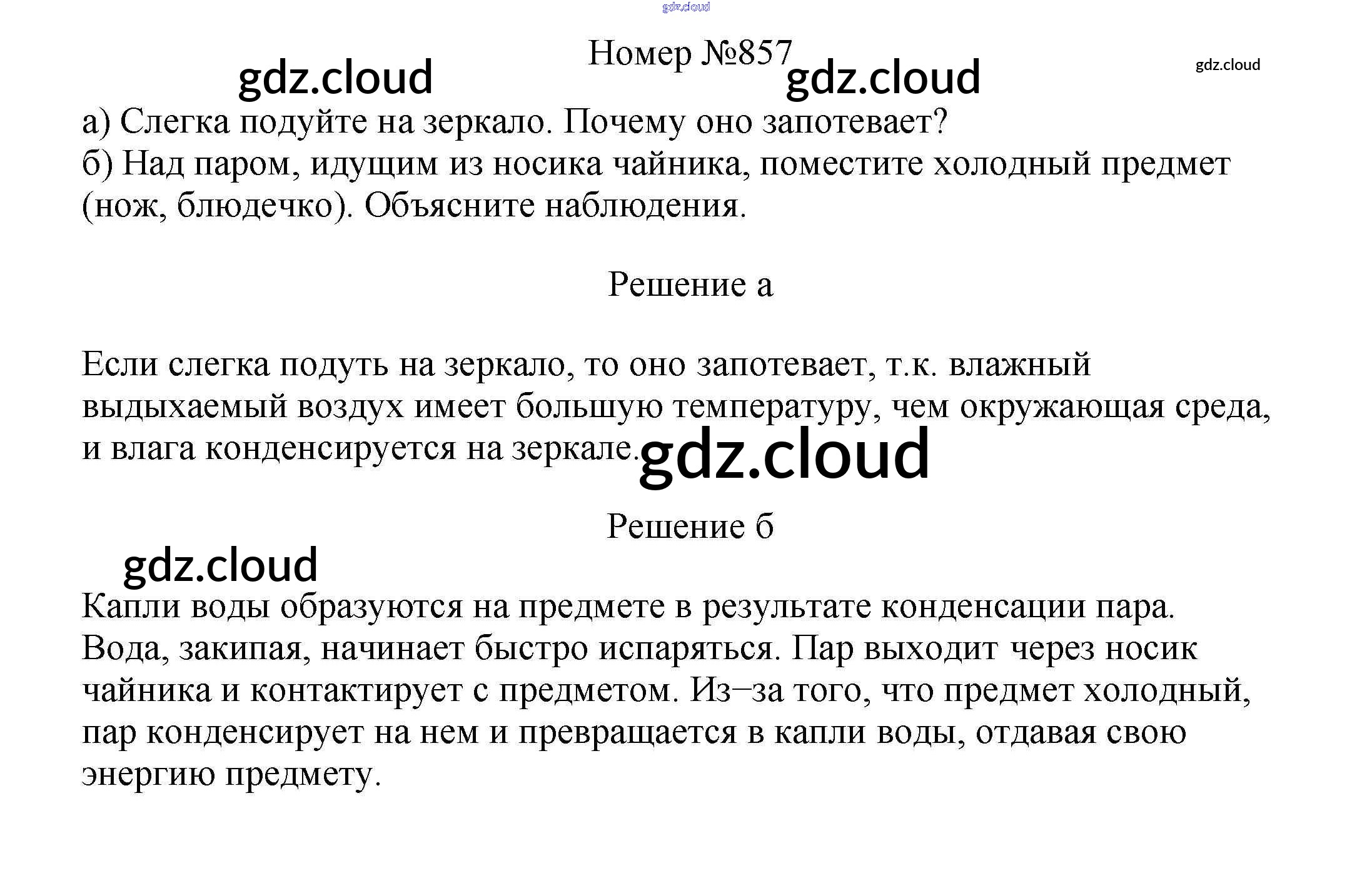 Ответ на задание 857 Сборник вопросов и задач Физика за 7, 8, 9 (седьмой, восьмой, девятый) класс Марон, Позойский Вертикаль 2013