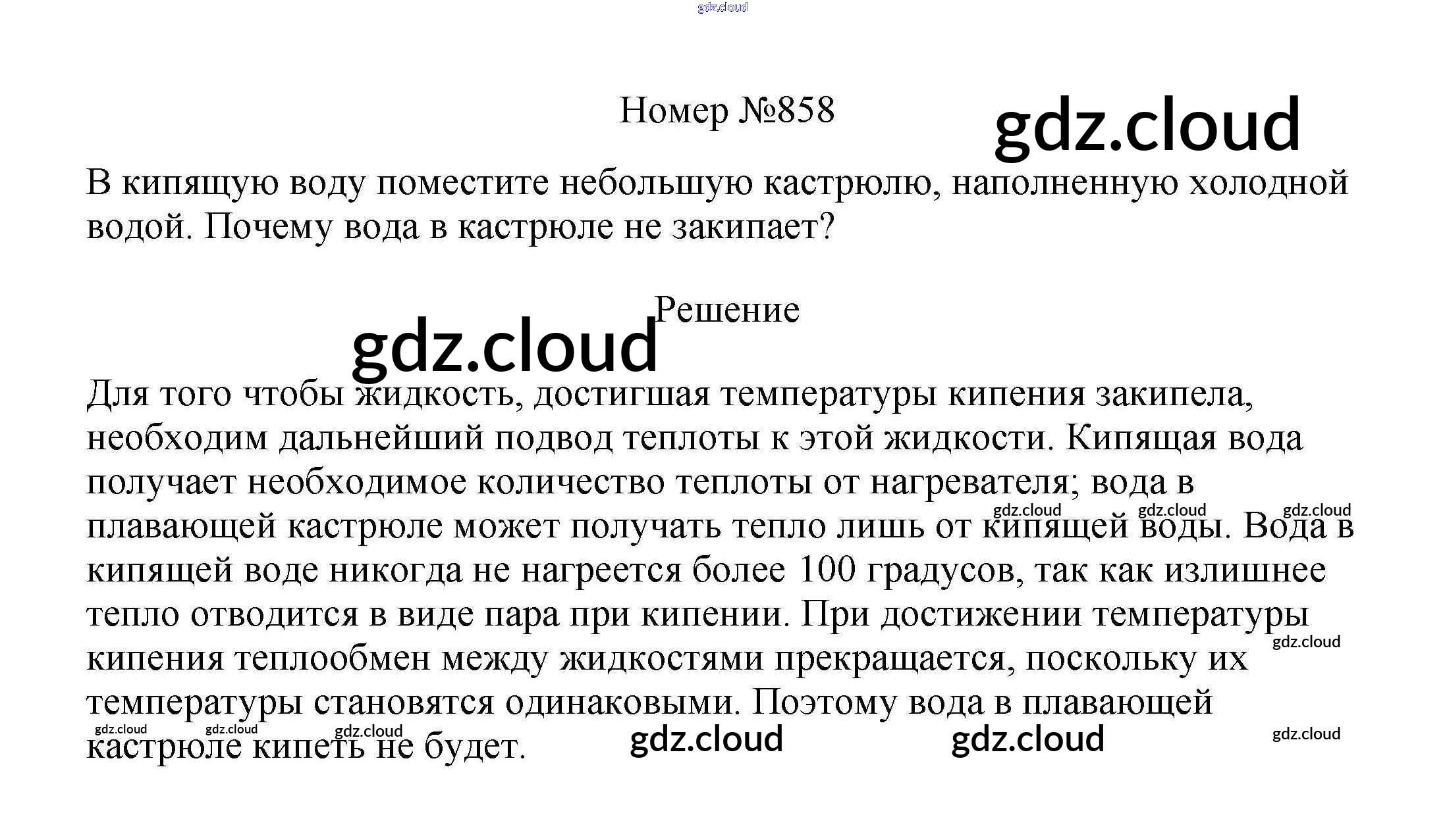 Ответ на задание 858 Сборник вопросов и задач Физика за 7, 8, 9 (седьмой, восьмой, девятый) класс Марон, Позойский Вертикаль 2013