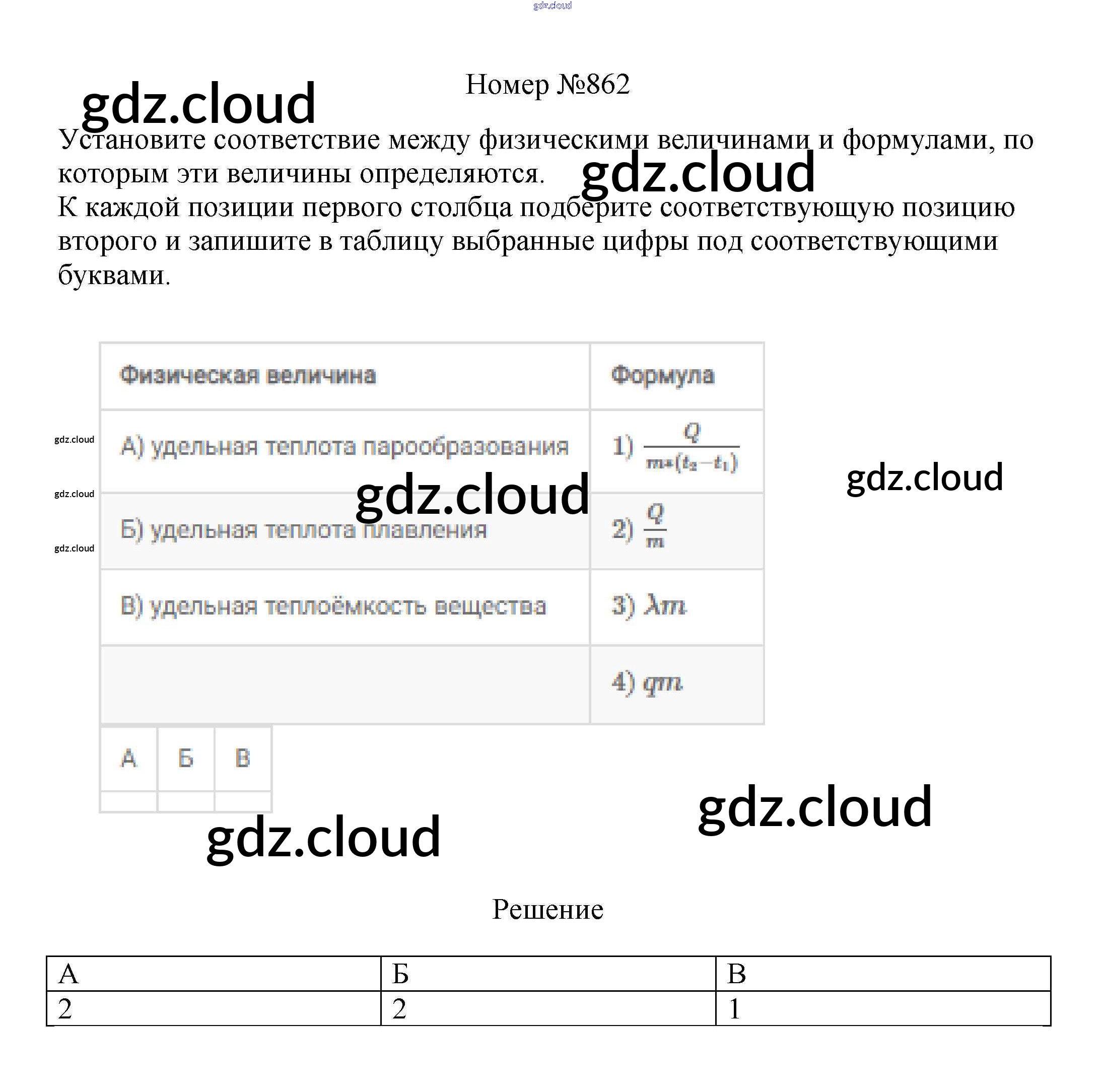 Ответ на задание 862 Сборник вопросов и задач Физика за 7, 8, 9 (седьмой, восьмой, девятый) класс Марон, Позойский Вертикаль 2013