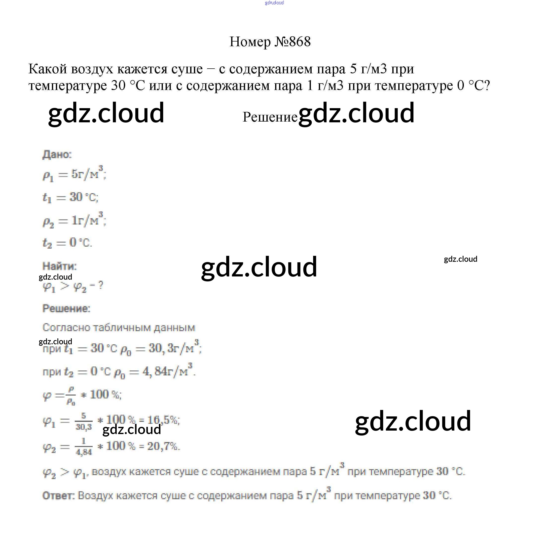Ответ на задание 868 Сборник вопросов и задач Физика за 7, 8, 9 (седьмой, восьмой, девятый) класс Марон, Позойский Вертикаль 2013