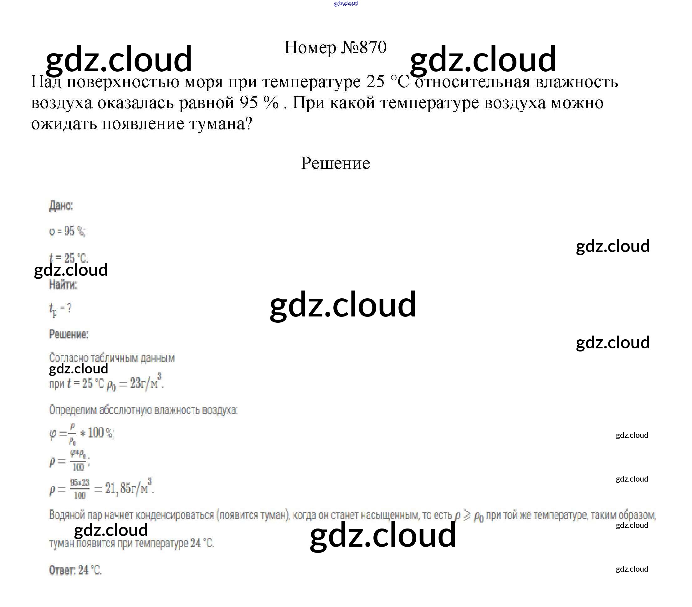 Ответ на задание 870 Сборник вопросов и задач Физика за 7, 8, 9 (седьмой, восьмой, девятый) класс Марон, Позойский Вертикаль 2013