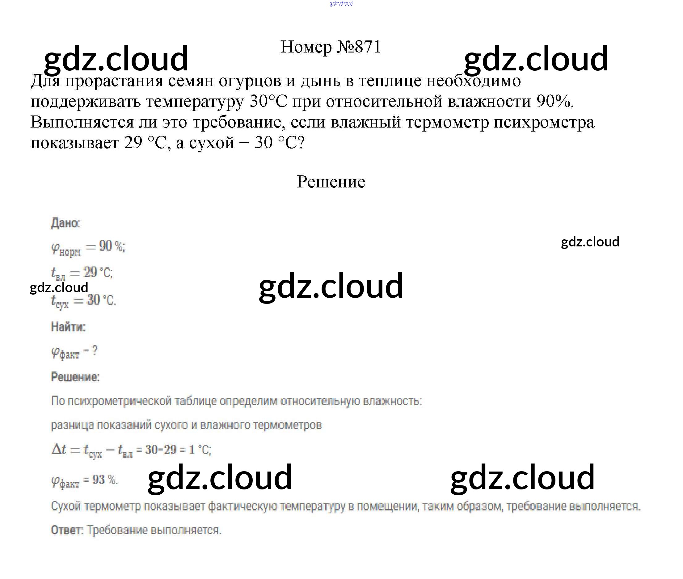 Ответ на задание 871 Сборник вопросов и задач Физика за 7, 8, 9 (седьмой, восьмой, девятый) класс Марон, Позойский Вертикаль 2013