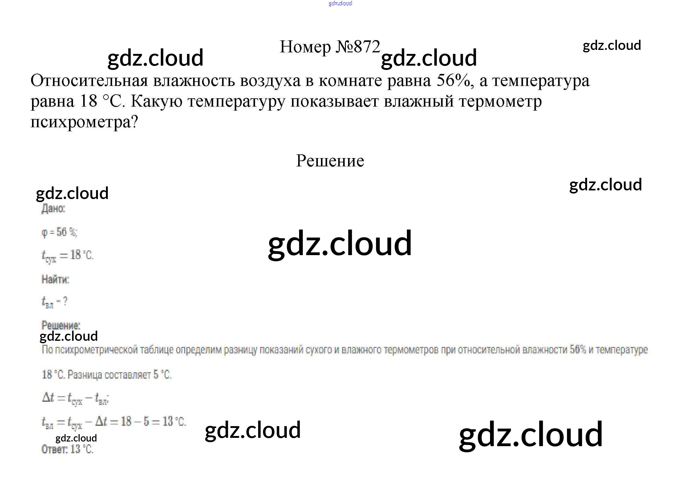 Ответ на задание 872 Сборник вопросов и задач Физика за 7, 8, 9 (седьмой, восьмой, девятый) класс Марон, Позойский Вертикаль 2013