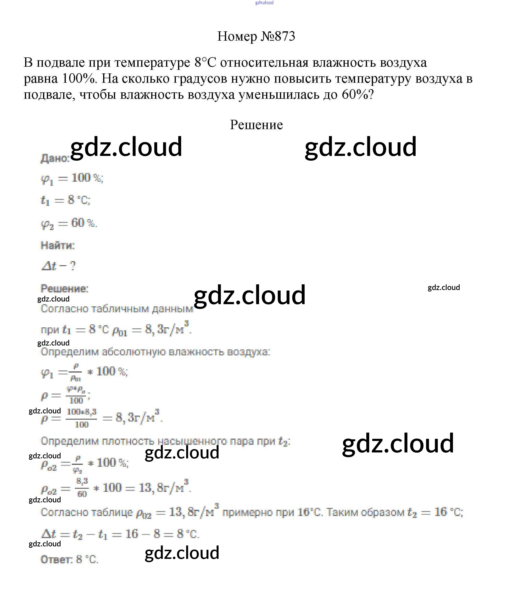 Ответ на задание 873 Сборник вопросов и задач Физика за 7, 8, 9 (седьмой, восьмой, девятый) класс Марон, Позойский Вертикаль 2013