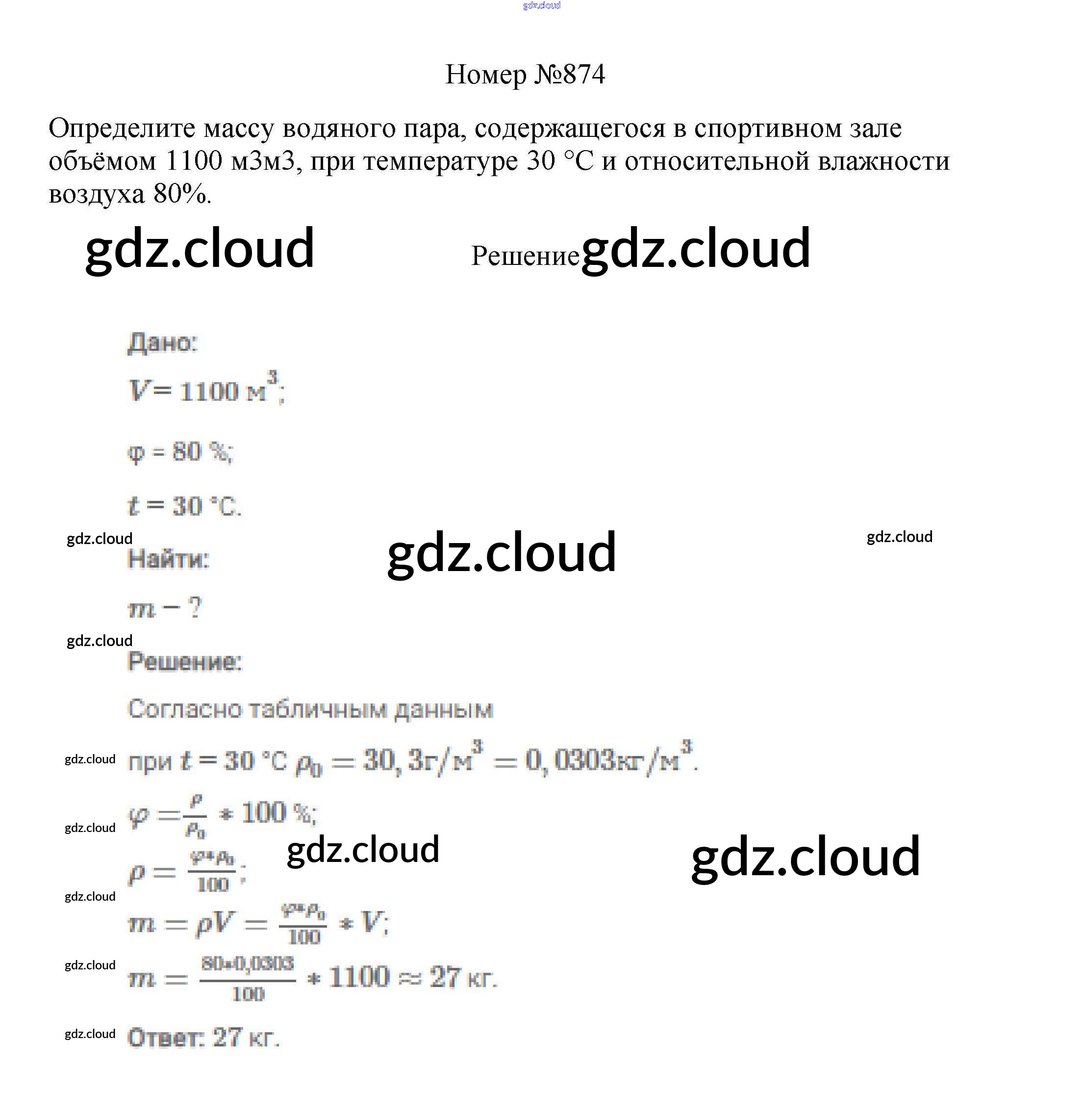 Ответ на задание 874 Сборник вопросов и задач Физика за 7, 8, 9 (седьмой, восьмой, девятый) класс Марон, Позойский Вертикаль 2013