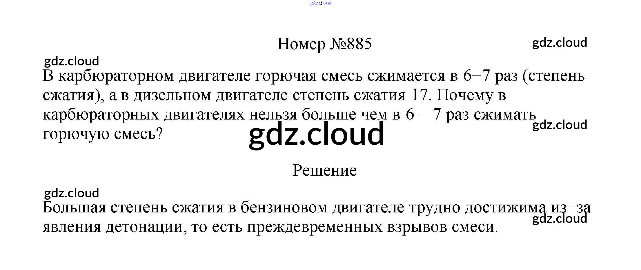 Ответ на задание 885 Сборник вопросов и задач Физика за 7, 8, 9 (седьмой, восьмой, девятый) класс Марон, Позойский Вертикаль 2013