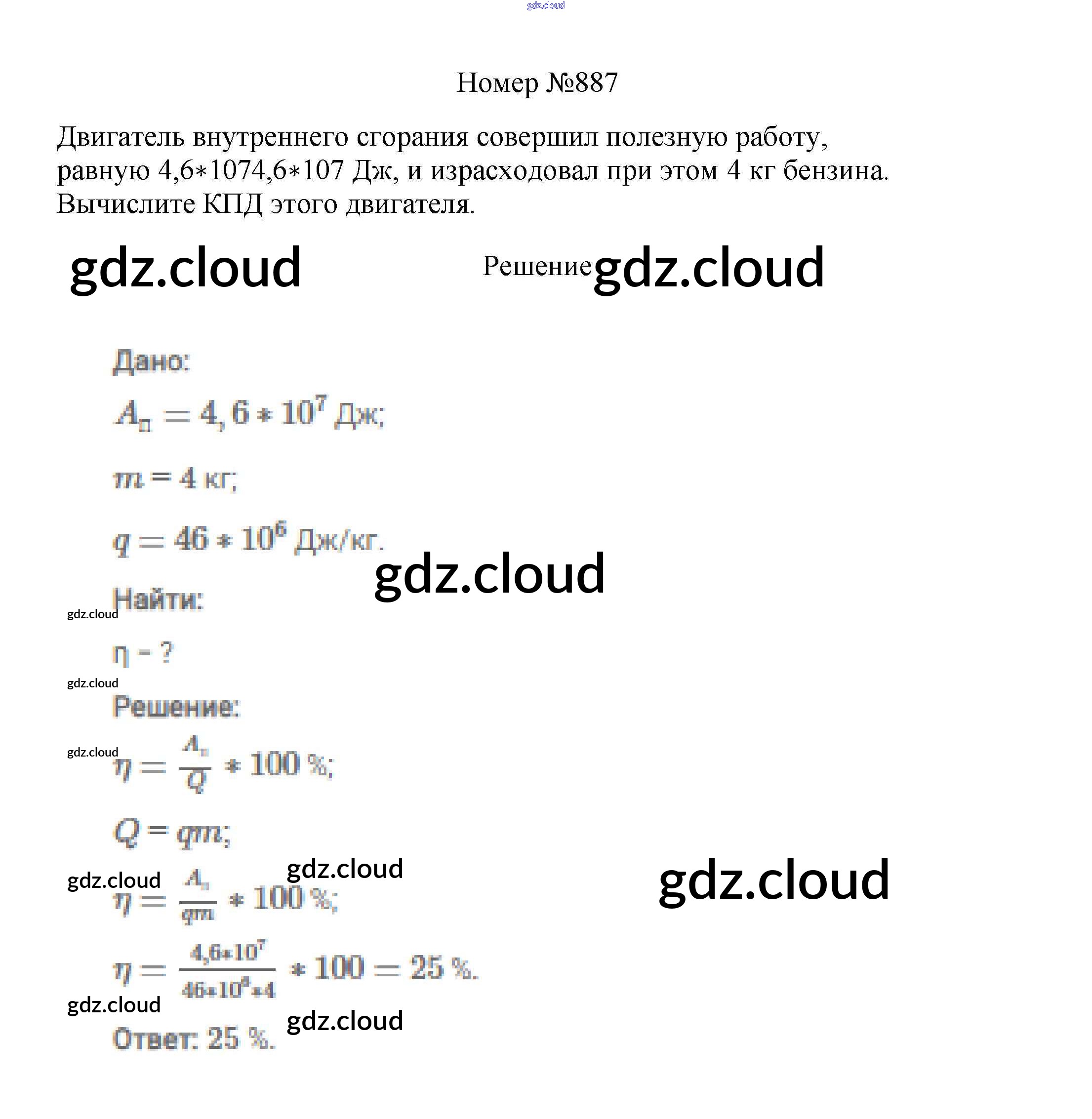 Ответ на задание 887 Сборник вопросов и задач Физика за 7, 8, 9 (седьмой, восьмой, девятый) класс Марон, Позойский Вертикаль 2013