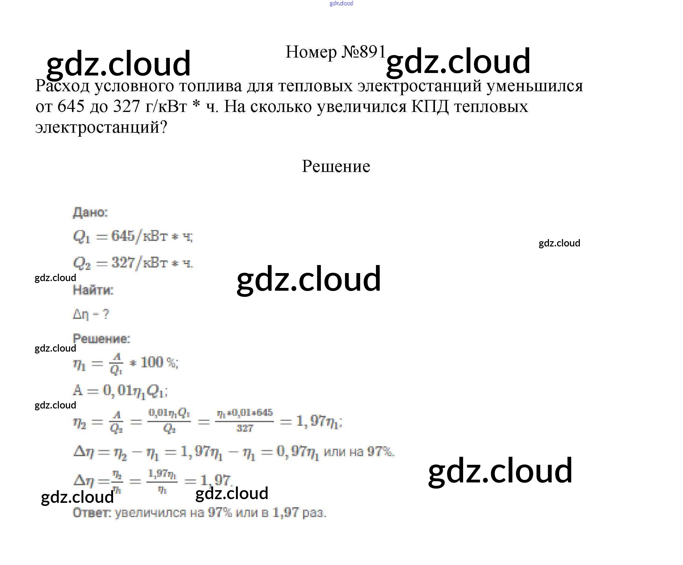 Ответ на задание 891 Сборник вопросов и задач Физика за 7, 8, 9 (седьмой, восьмой, девятый) класс Марон, Позойский Вертикаль 2013