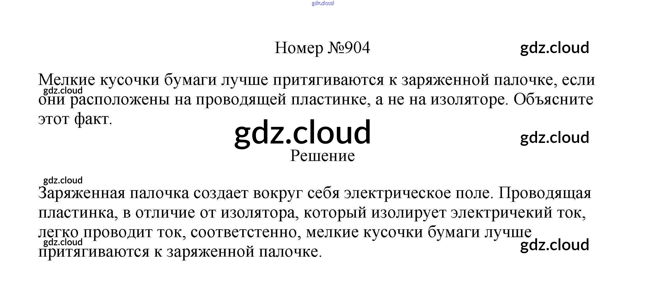 Ответ на задание 904 Сборник вопросов и задач Физика за 7, 8, 9 (седьмой, восьмой, девятый) класс Марон, Позойский Вертикаль 2013