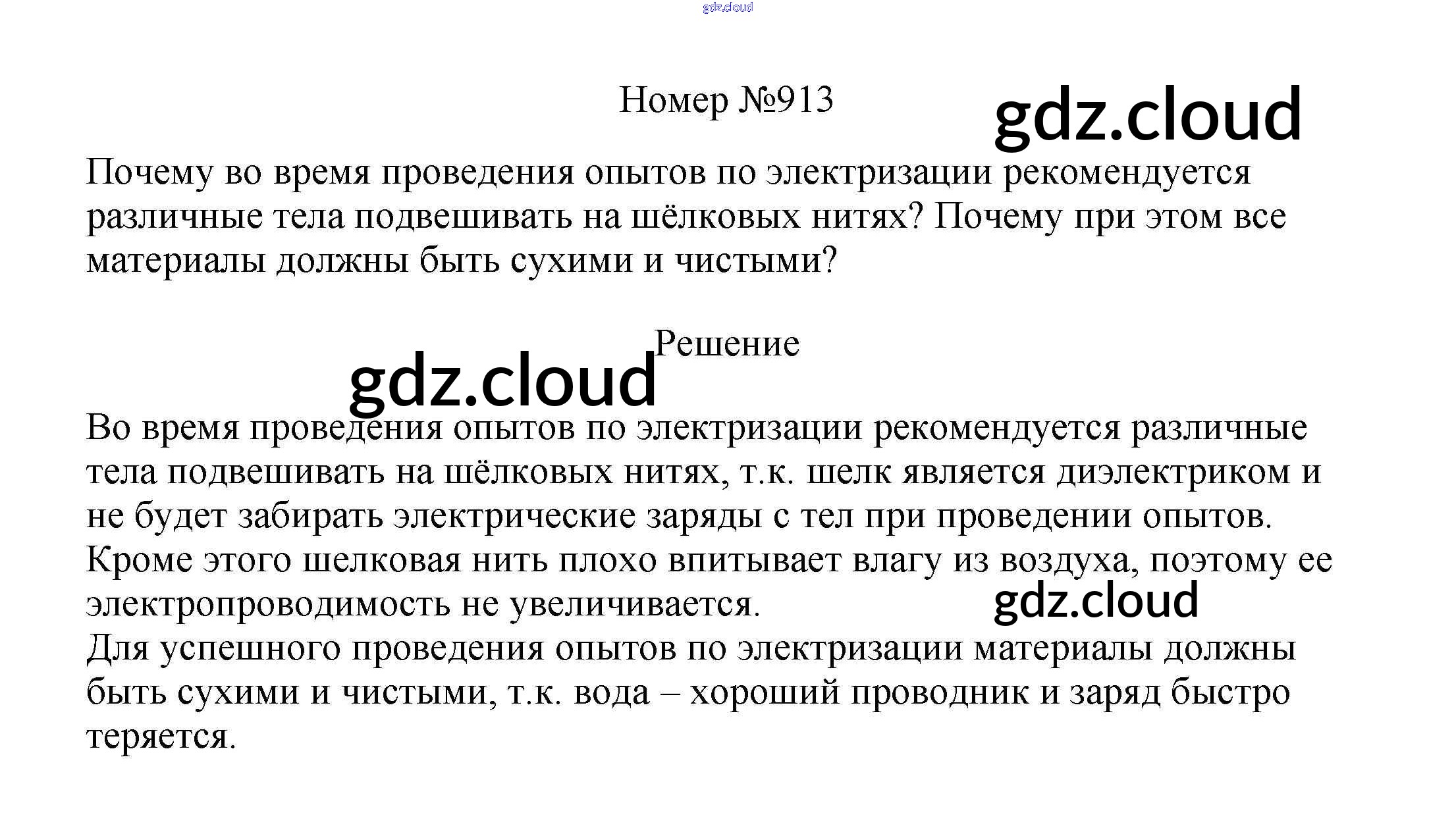 Ответ на задание 913 Сборник вопросов и задач Физика за 7, 8, 9 (седьмой, восьмой, девятый) класс Марон, Позойский Вертикаль 2013