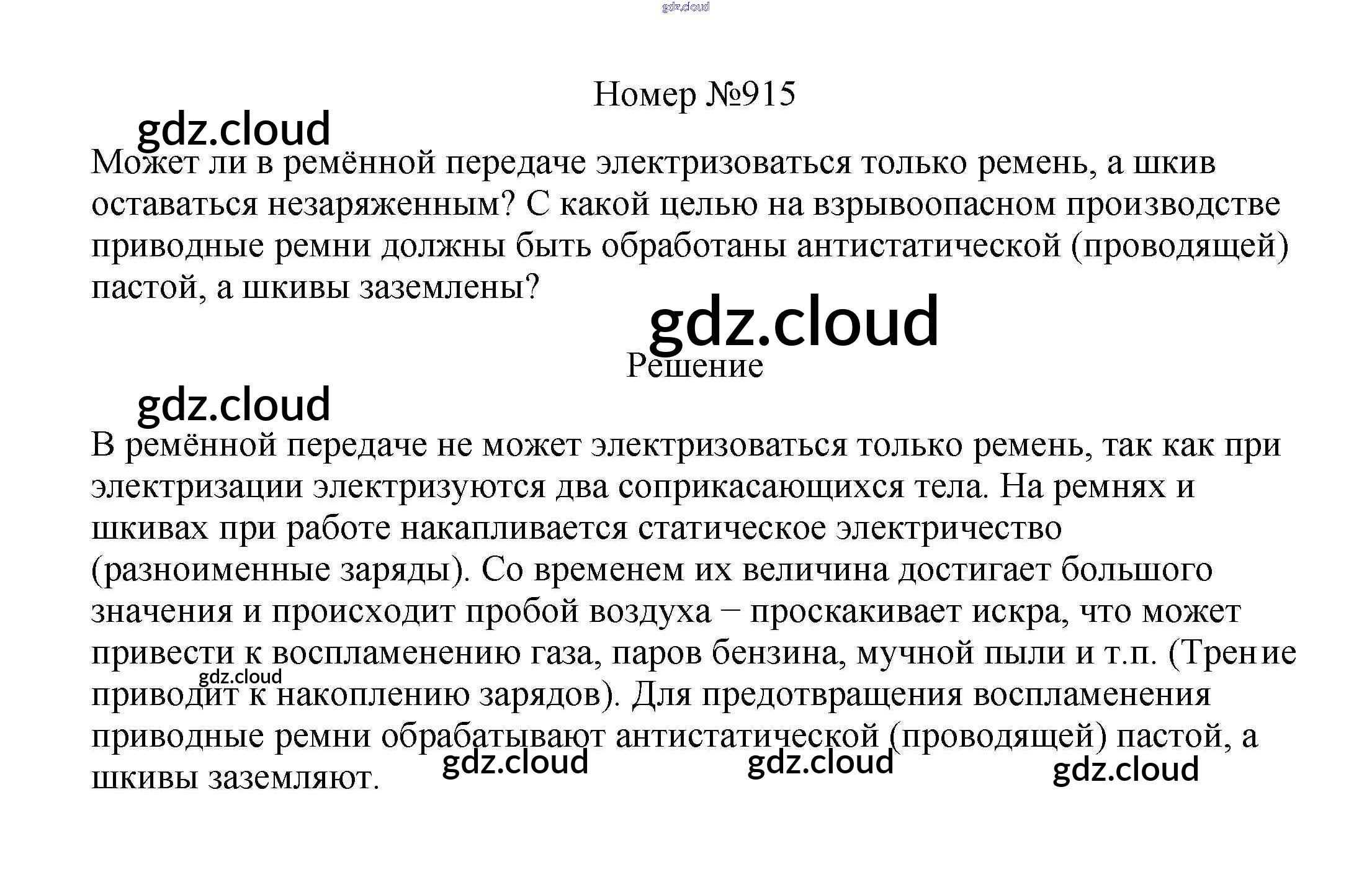 Ответ на задание 915 Сборник вопросов и задач Физика за 7, 8, 9 (седьмой, восьмой, девятый) класс Марон, Позойский Вертикаль 2013