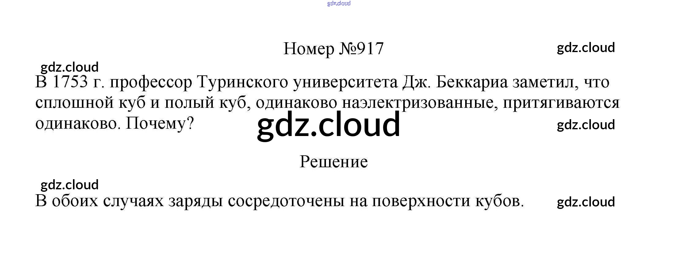 Ответ на задание 917 Сборник вопросов и задач Физика за 7, 8, 9 (седьмой, восьмой, девятый) класс Марон, Позойский Вертикаль 2013