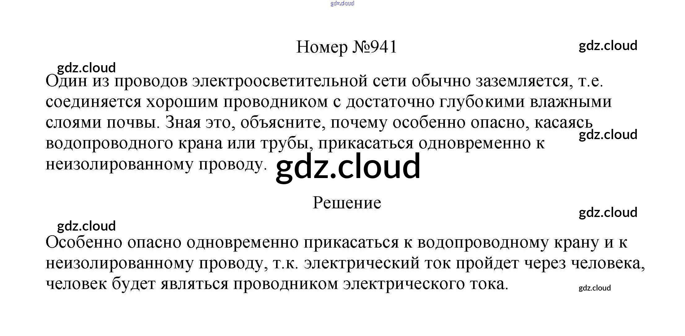 Ответ на задание 941 Сборник вопросов и задач Физика за 7, 8, 9 (седьмой, восьмой, девятый) класс Марон, Позойский Вертикаль 2013