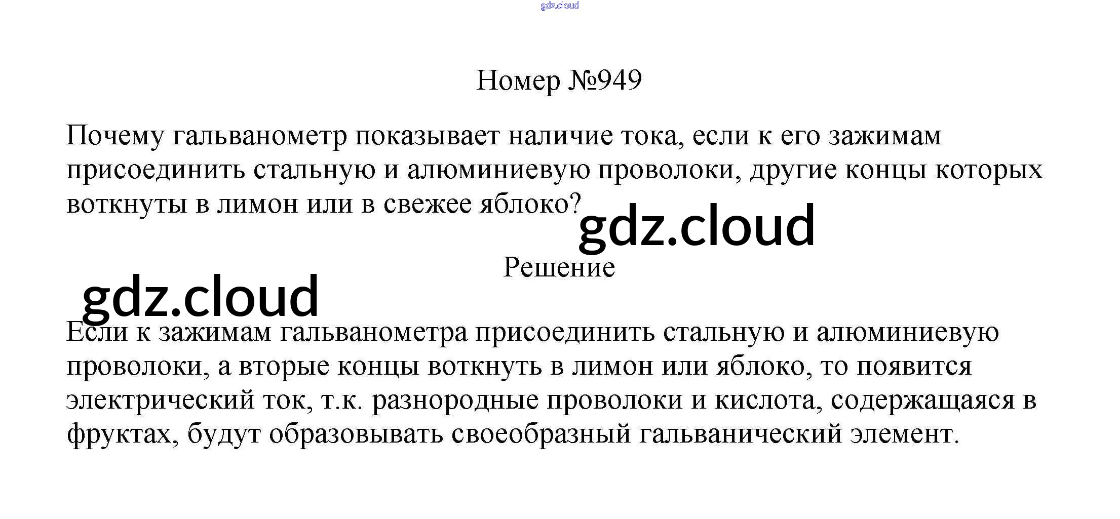 Ответ на задание 949 Сборник вопросов и задач Физика за 7, 8, 9 (седьмой, восьмой, девятый) класс Марон, Позойский Вертикаль 2013