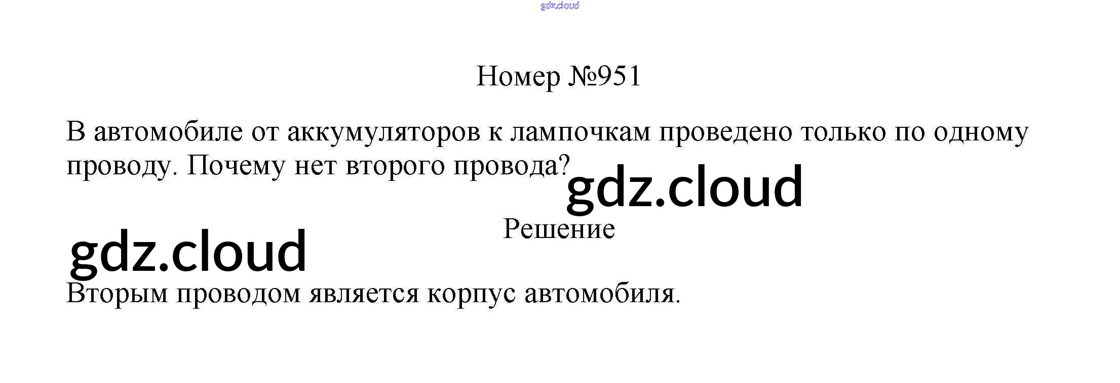 Ответ на задание 951 Сборник вопросов и задач Физика за 7, 8, 9 (седьмой, восьмой, девятый) класс Марон, Позойский Вертикаль 2013