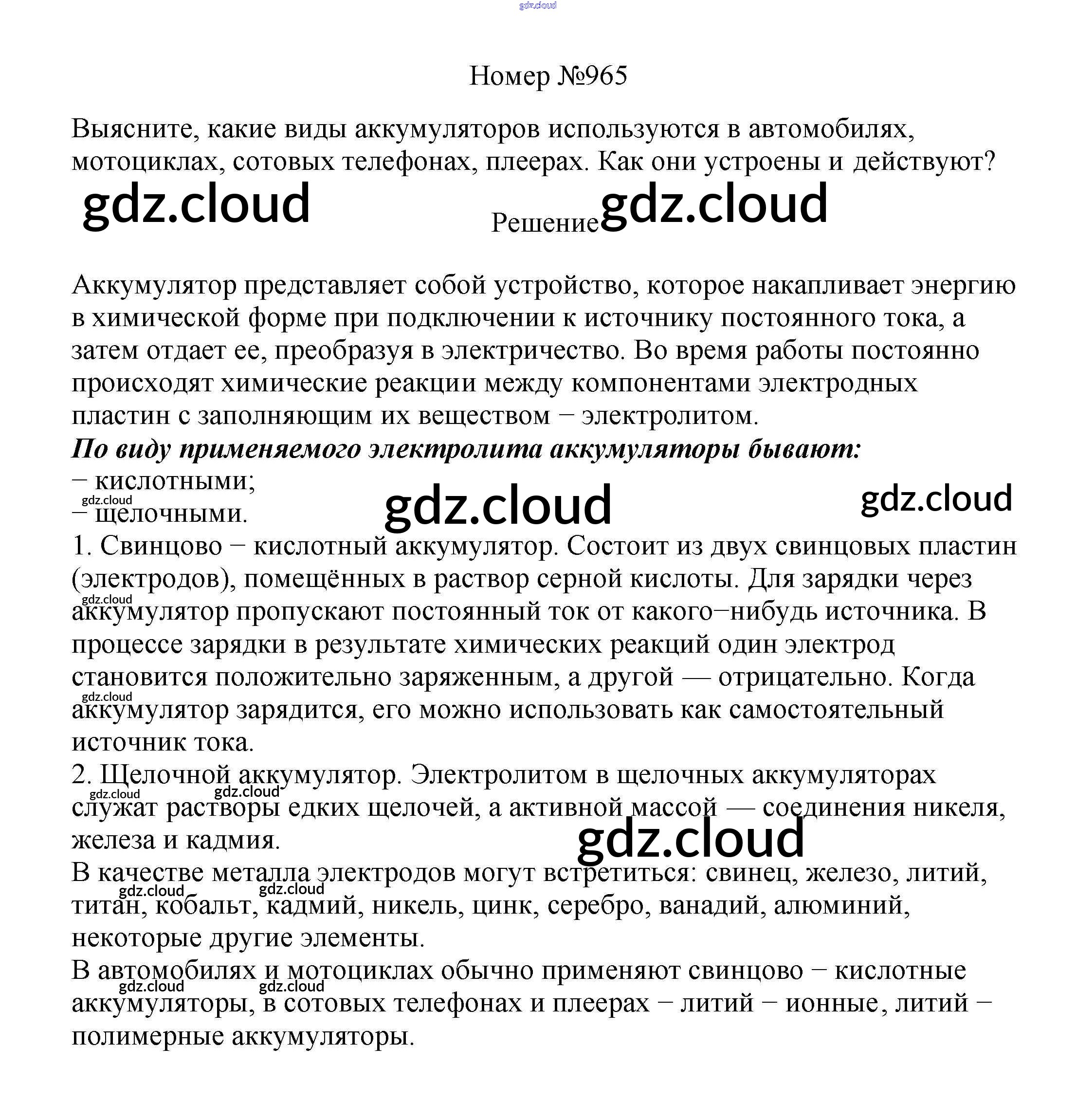 Ответ на задание 965 Сборник вопросов и задач Физика за 7, 8, 9 (седьмой, восьмой, девятый) класс Марон, Позойский Вертикаль 2013