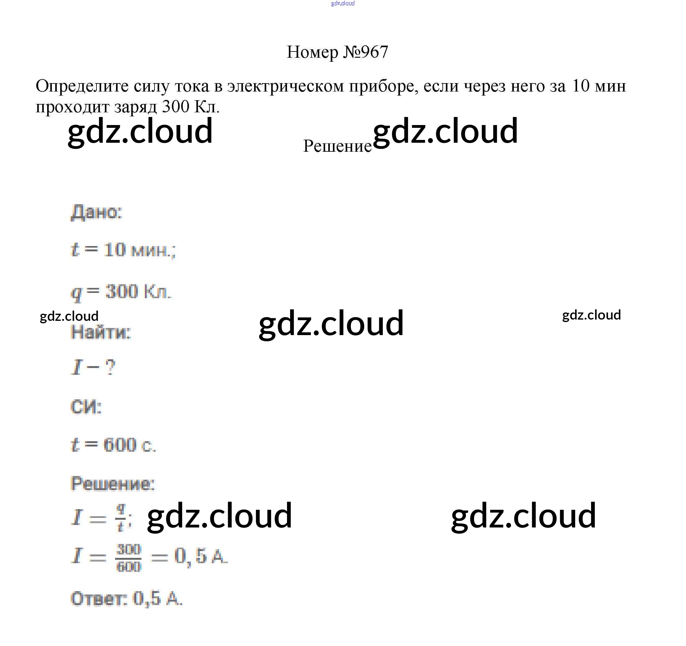 Ответ на задание 967 Сборник вопросов и задач Физика за 7, 8, 9 (седьмой, восьмой, девятый) класс Марон, Позойский Вертикаль 2013