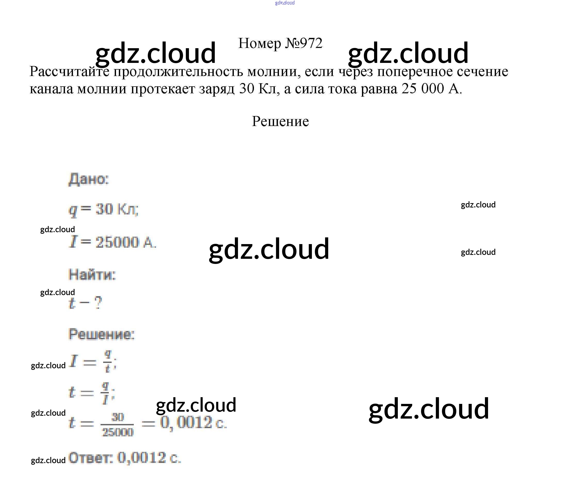 Ответ на задание 972 Сборник вопросов и задач Физика за 7, 8, 9 (седьмой, восьмой, девятый) класс Марон, Позойский Вертикаль 2013