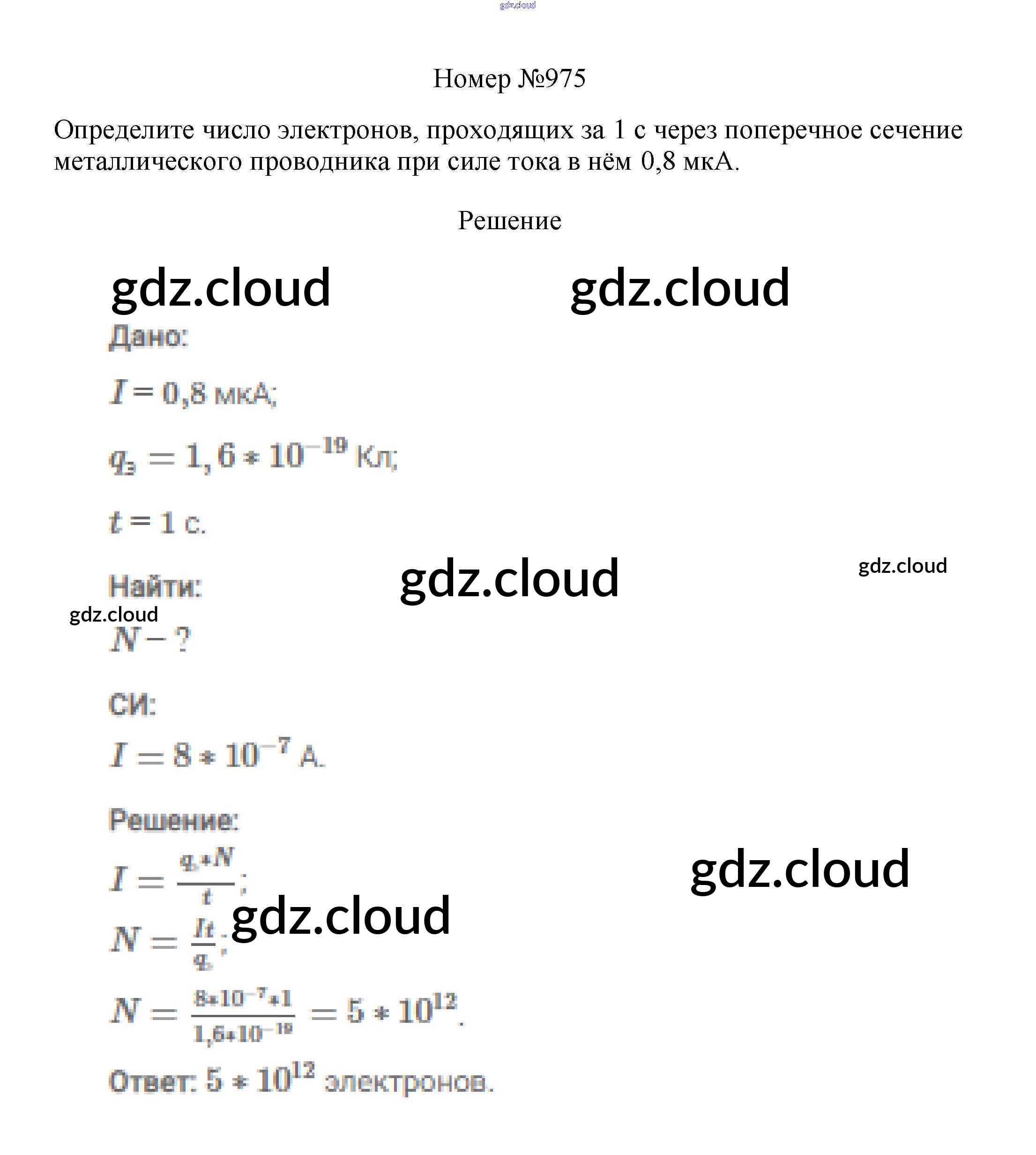 Ответ на задание 975 Сборник вопросов и задач Физика за 7, 8, 9 (седьмой, восьмой, девятый) класс Марон, Позойский Вертикаль 2013