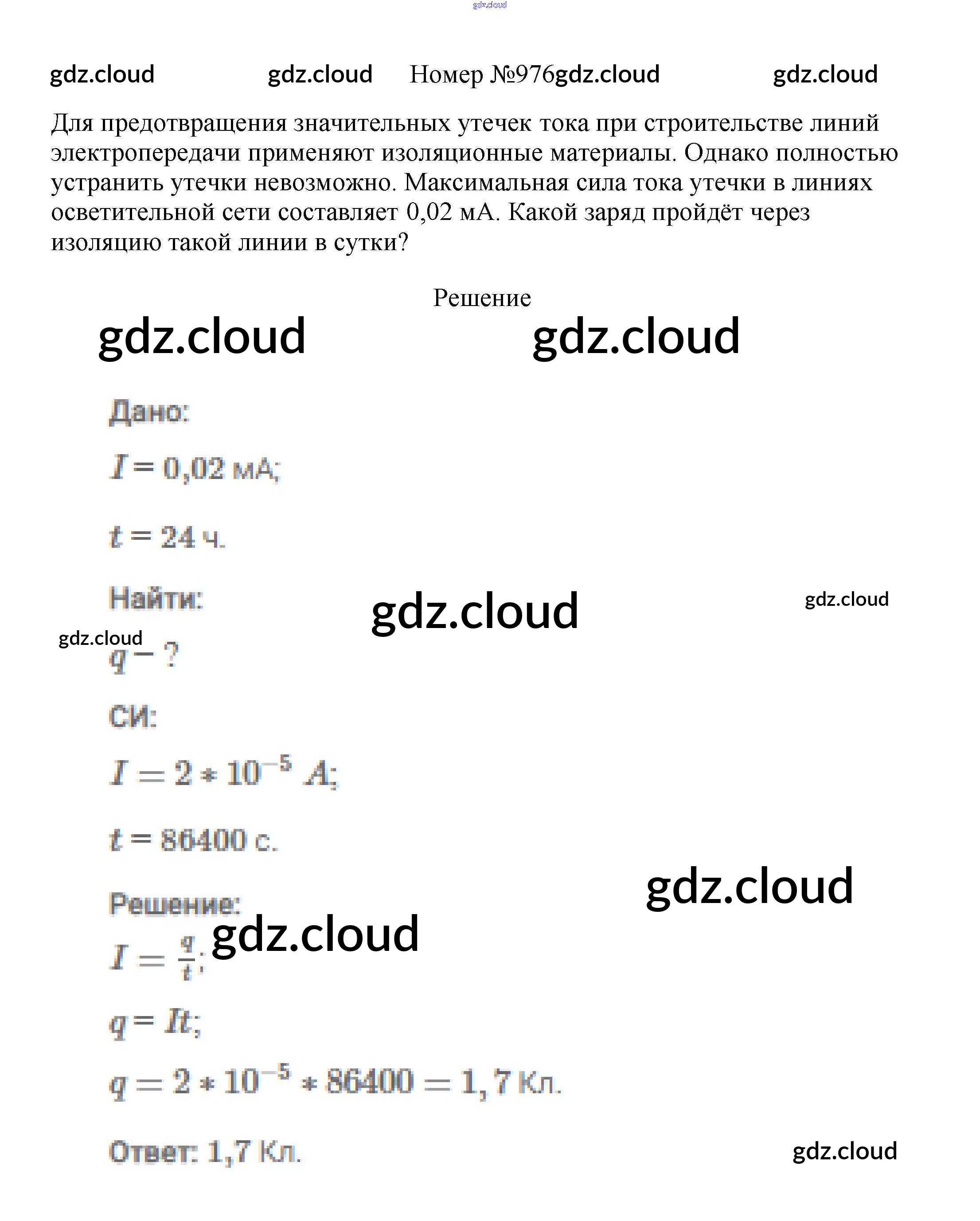 Ответ на задание 976 Сборник вопросов и задач Физика за 7, 8, 9 (седьмой, восьмой, девятый) класс Марон, Позойский Вертикаль 2013