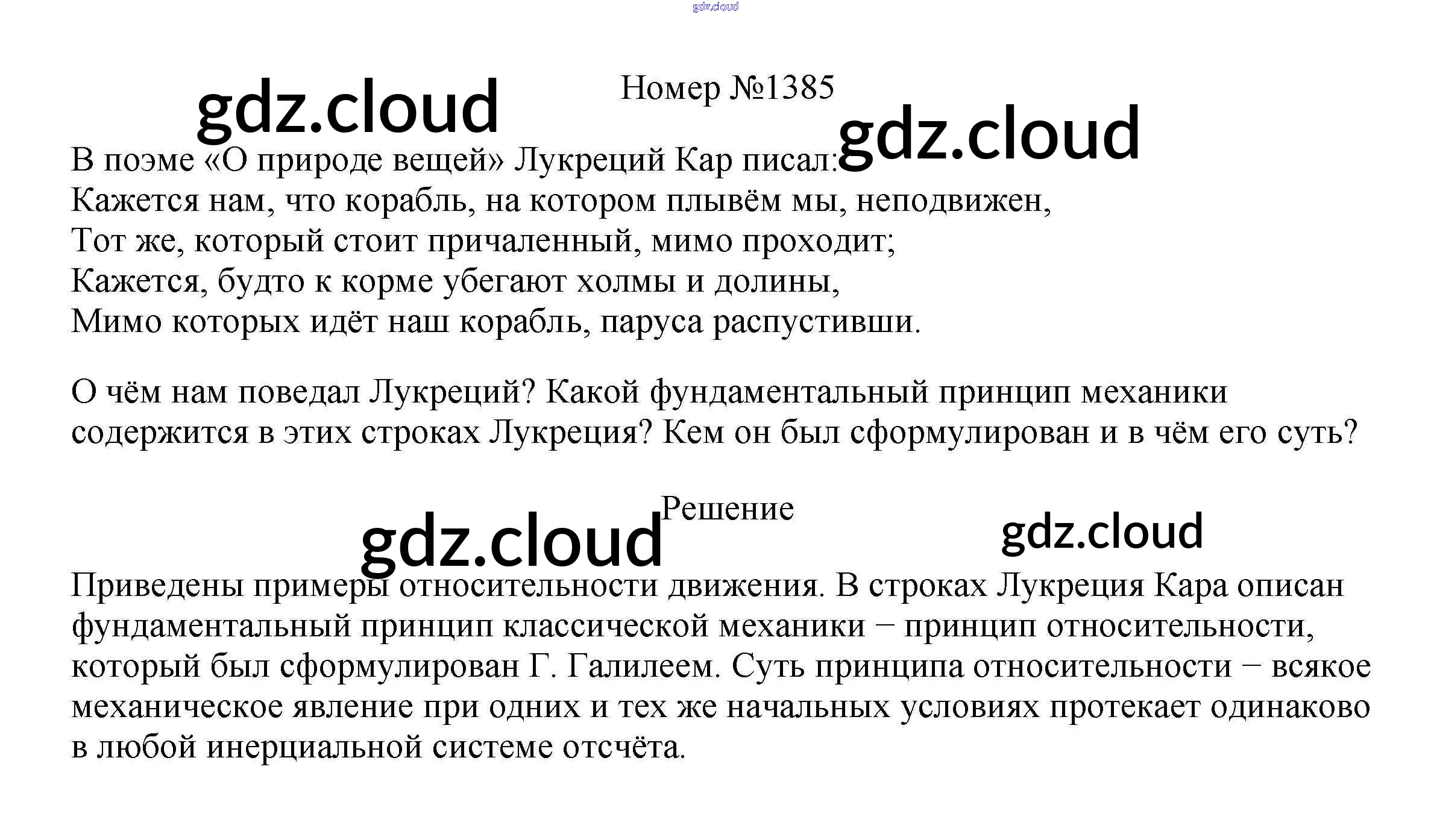 Ответ на задание 1385 Сборник вопросов и задач Физика за 7, 8, 9 (седьмой, восьмой, девятый) класс Марон, Позойский Вертикаль 2013