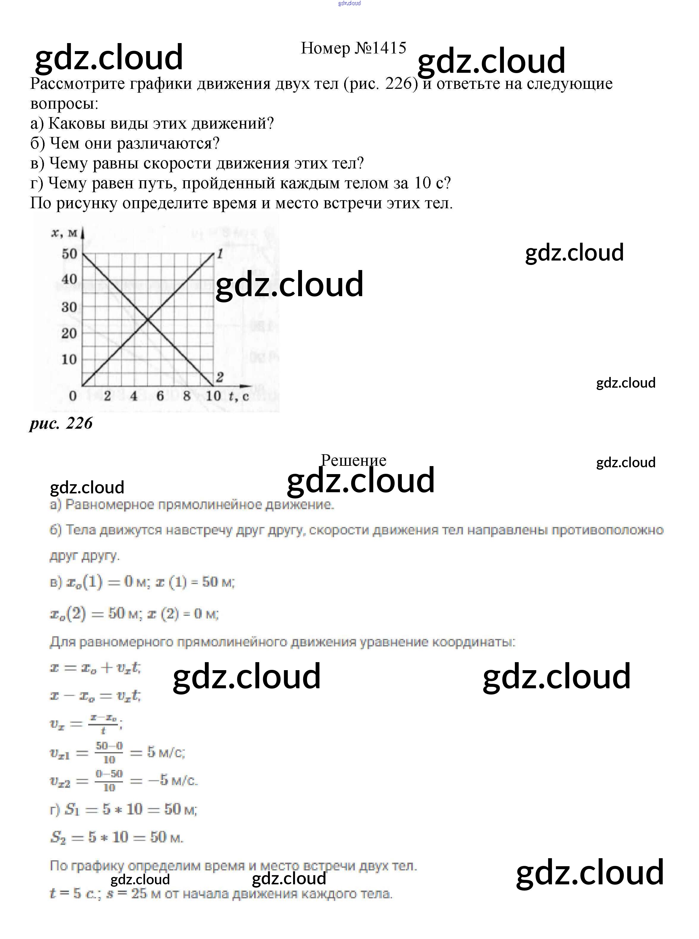 Ответ на задание 1415 Сборник вопросов и задач Физика за 7, 8, 9 (седьмой, восьмой, девятый) класс Марон, Позойский Вертикаль 2013