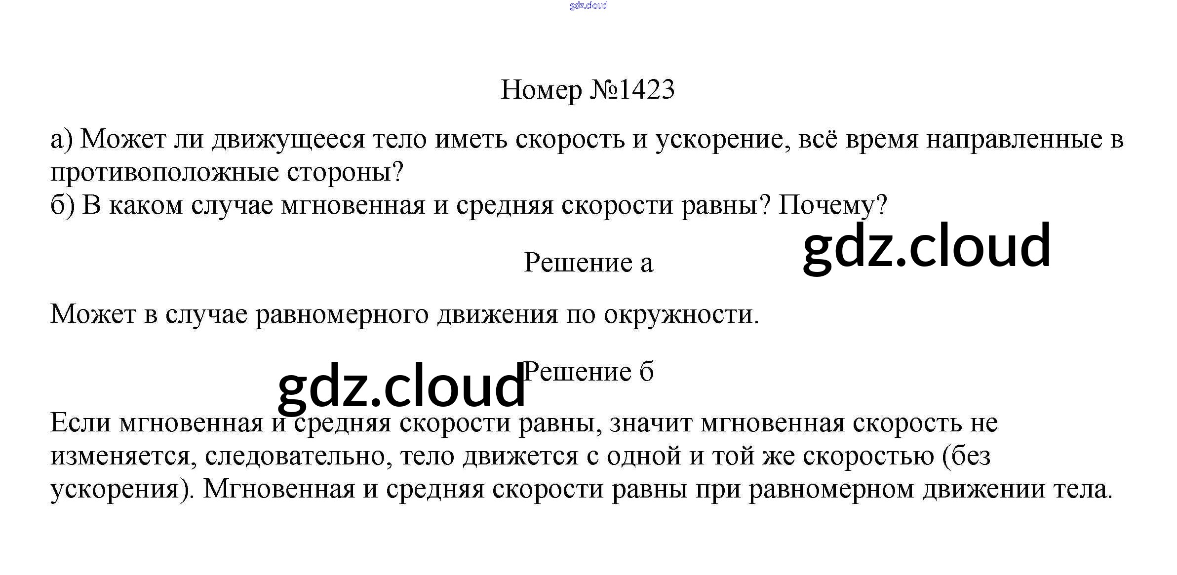 Ответ на задание 1423 Сборник вопросов и задач Физика за 7, 8, 9 (седьмой, восьмой, девятый) класс Марон, Позойский Вертикаль 2013