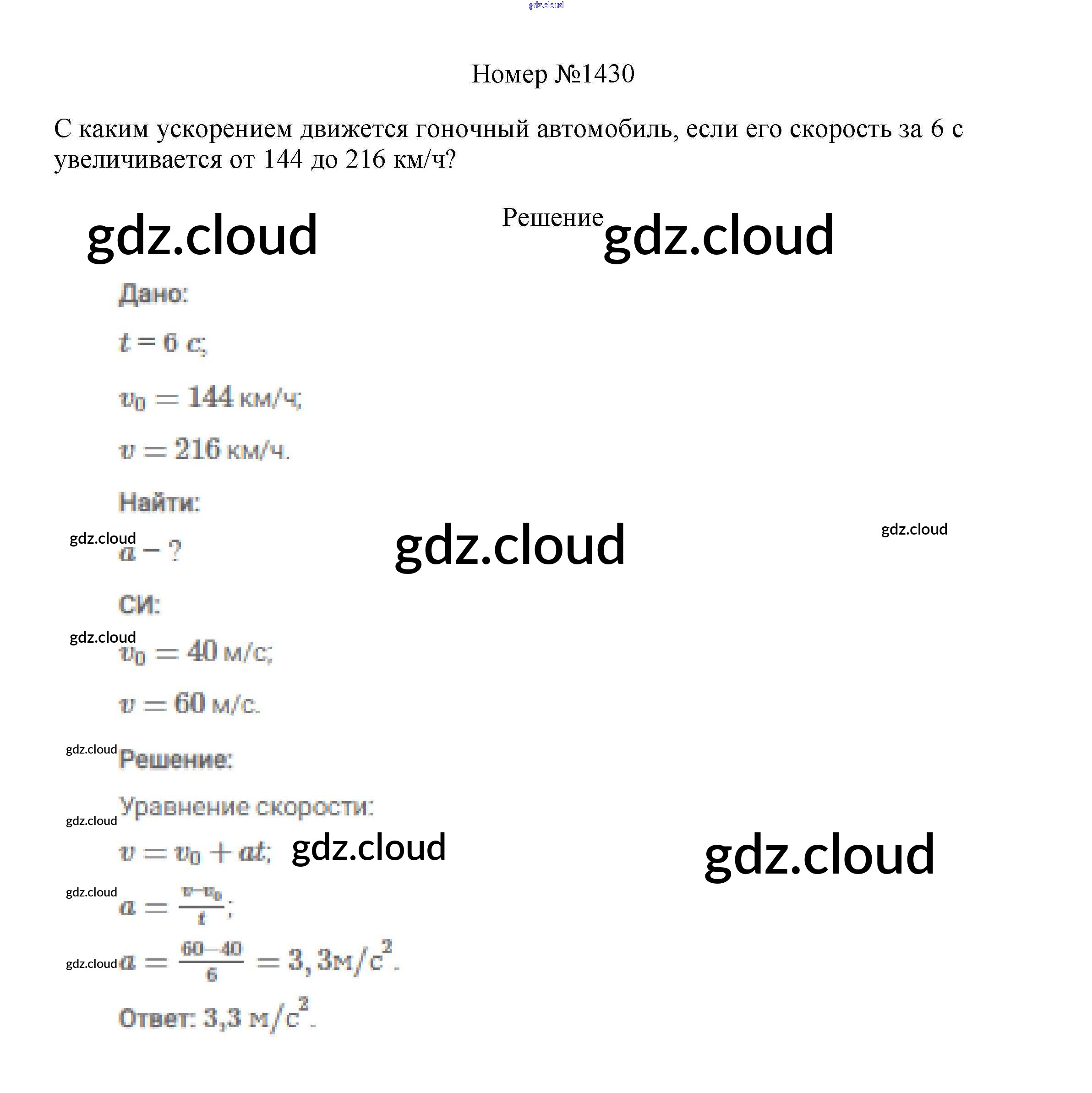 Ответ на задание 1430 Сборник вопросов и задач Физика за 7, 8, 9 (седьмой, восьмой, девятый) класс Марон, Позойский Вертикаль 2013