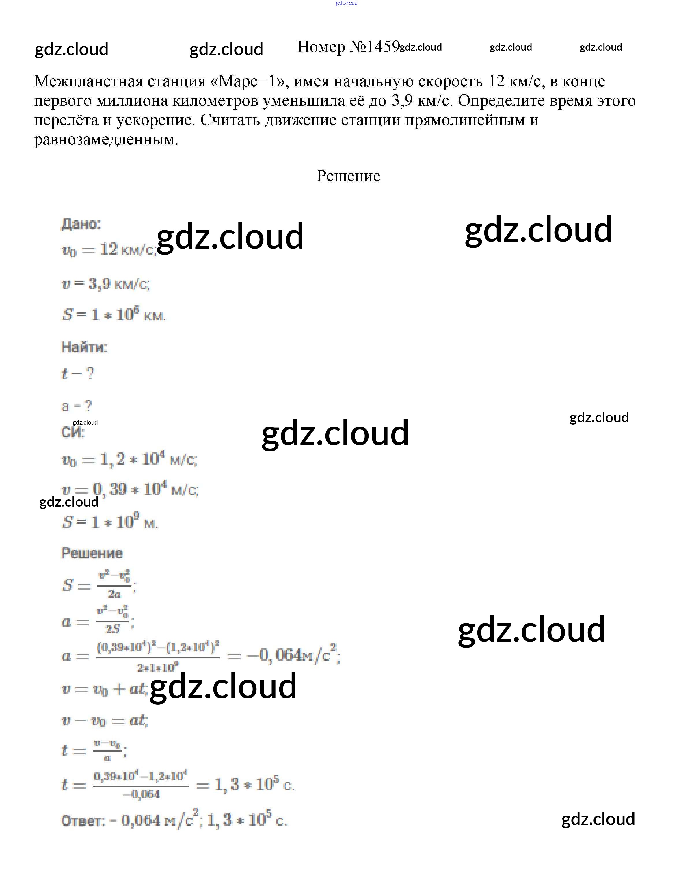 Ответ на задание 1459 Сборник вопросов и задач Физика за 7, 8, 9 (седьмой, восьмой, девятый) класс Марон, Позойский Вертикаль 2013