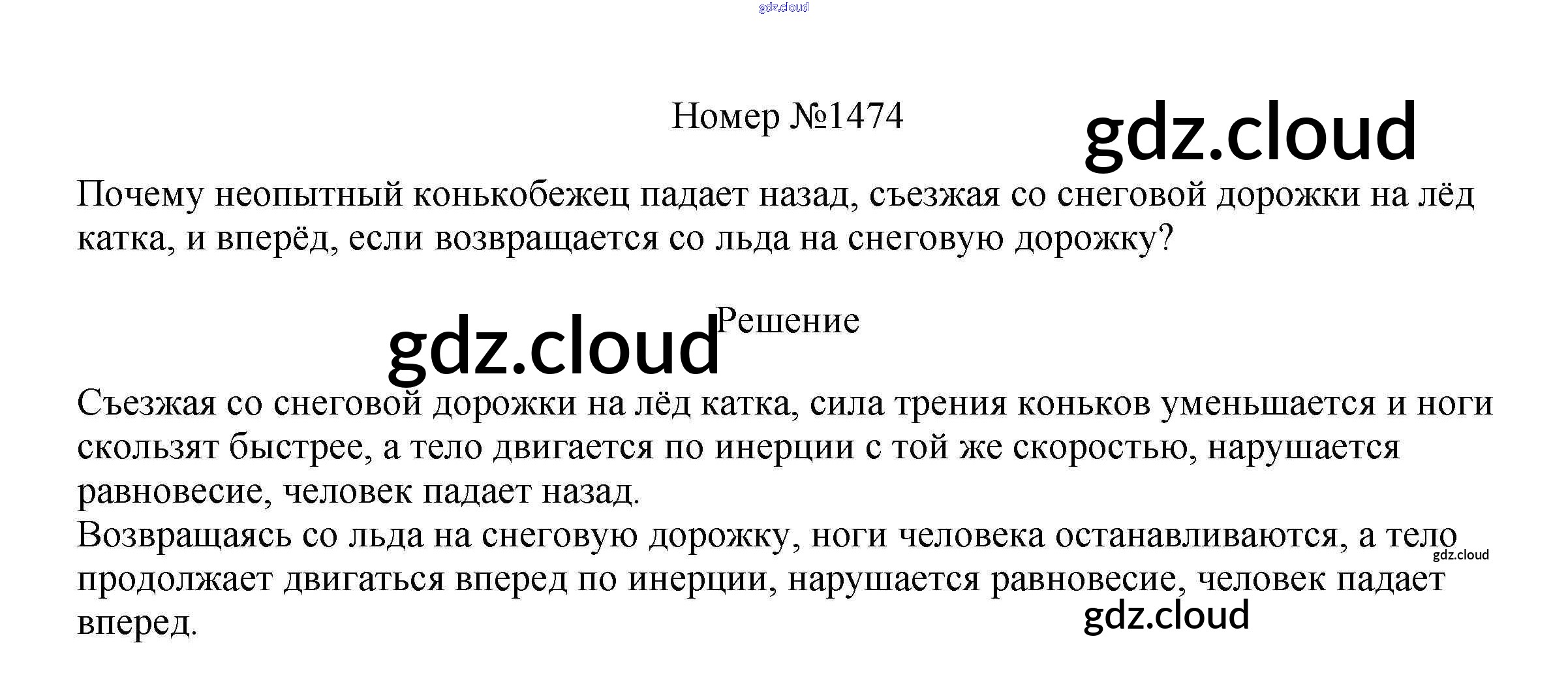 Ответ на задание 1474 Сборник вопросов и задач Физика за 7, 8, 9 (седьмой, восьмой, девятый) класс Марон, Позойский Вертикаль 2013