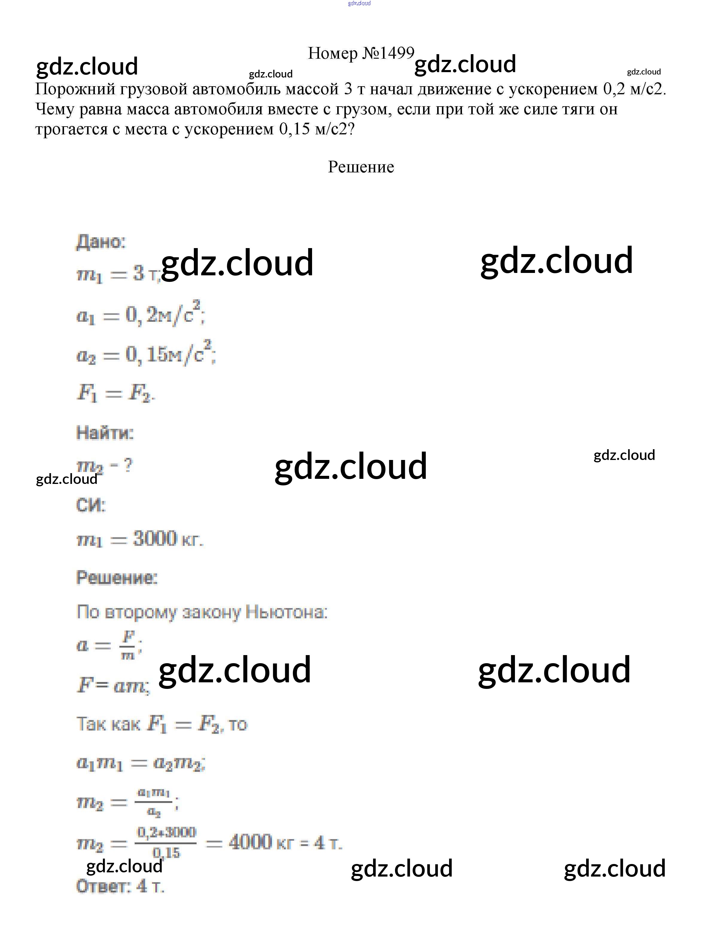 Ответ на задание 1499 Сборник вопросов и задач Физика за 7, 8, 9 (седьмой, восьмой, девятый) класс Марон, Позойский Вертикаль 2013