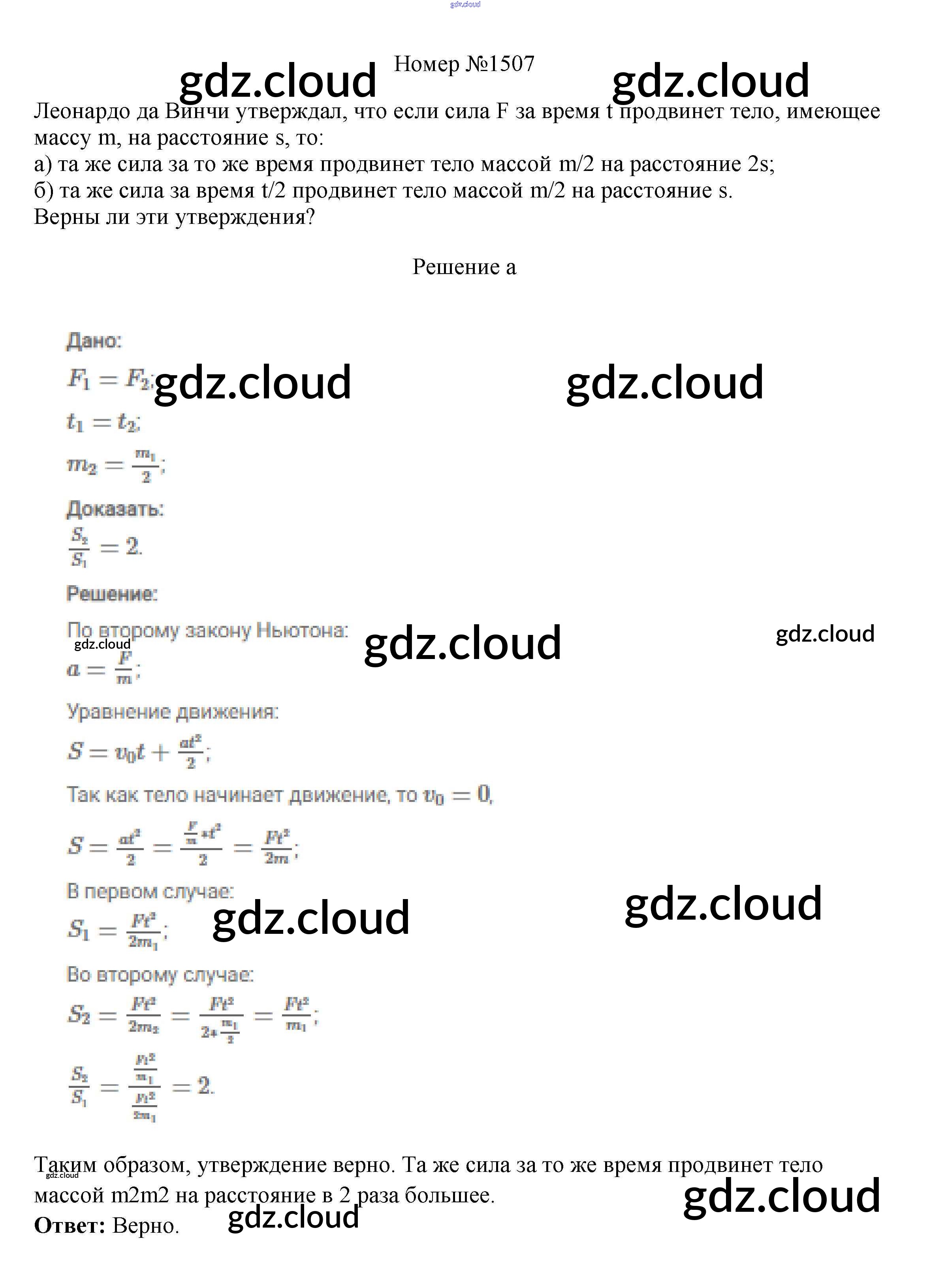 Ответ на задание 1507 Сборник вопросов и задач Физика за 7, 8, 9 (седьмой, восьмой, девятый) класс Марон, Позойский Вертикаль 2013