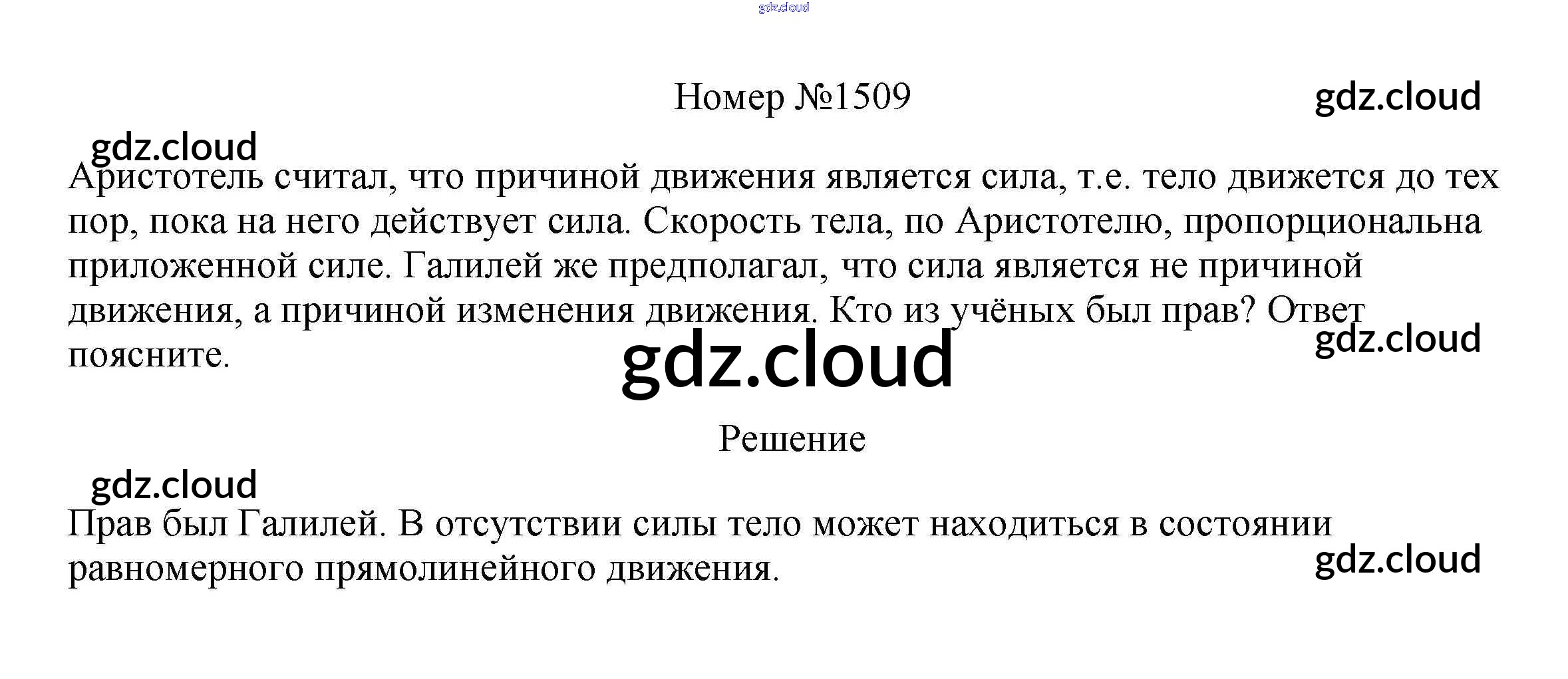 Ответ на задание 1509 Сборник вопросов и задач Физика за 7, 8, 9 (седьмой, восьмой, девятый) класс Марон, Позойский Вертикаль 2013