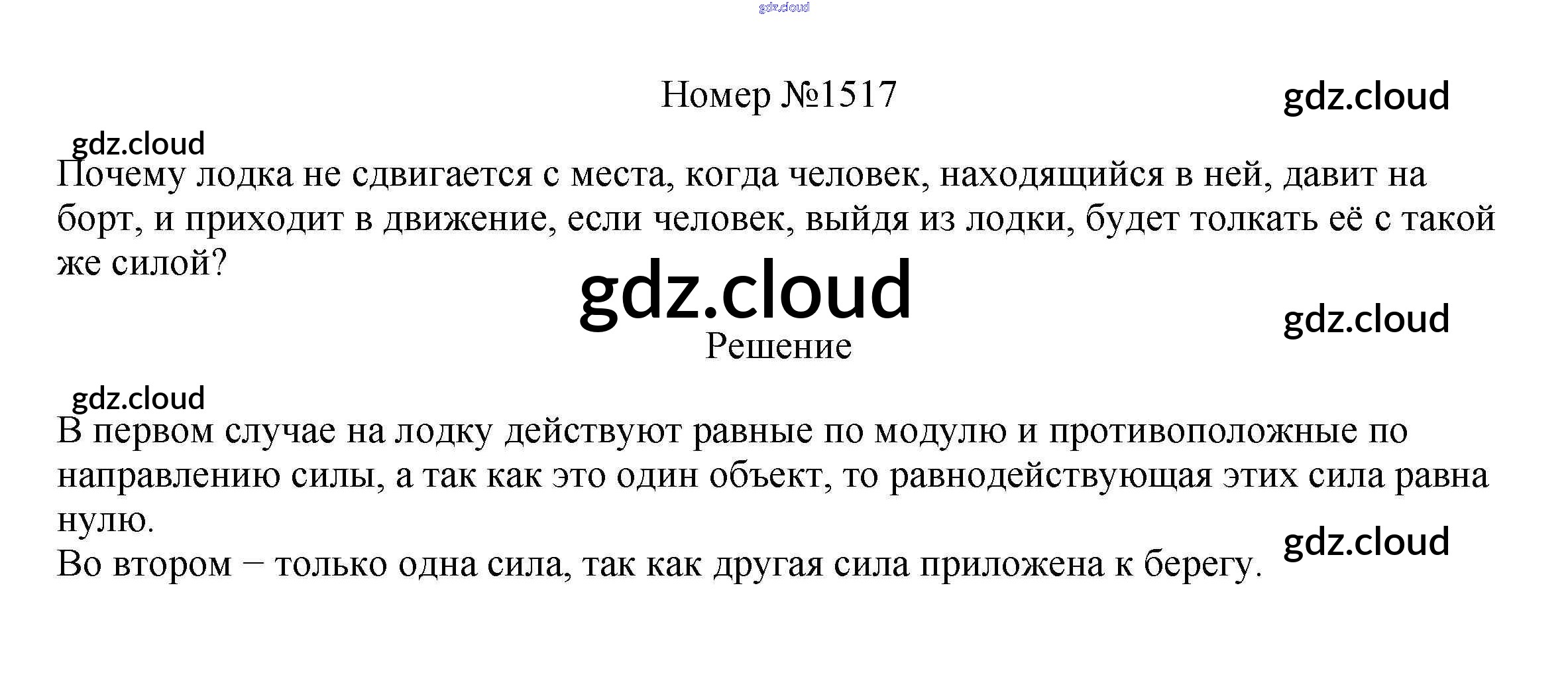 Ответ на задание 1517 Сборник вопросов и задач Физика за 7, 8, 9 (седьмой, восьмой, девятый) класс Марон, Позойский Вертикаль 2013