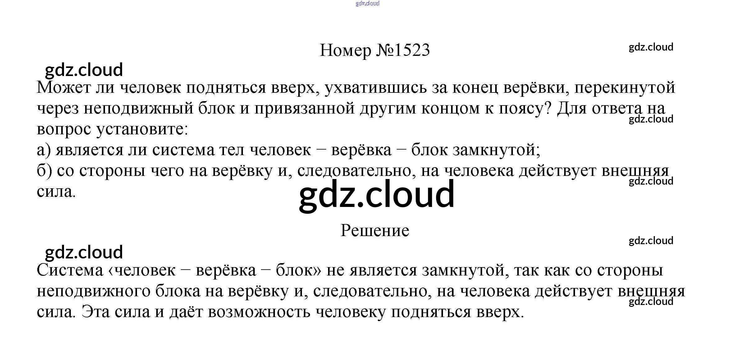 Ответ на задание 1523 Сборник вопросов и задач Физика за 7, 8, 9 (седьмой, восьмой, девятый) класс Марон, Позойский Вертикаль 2013