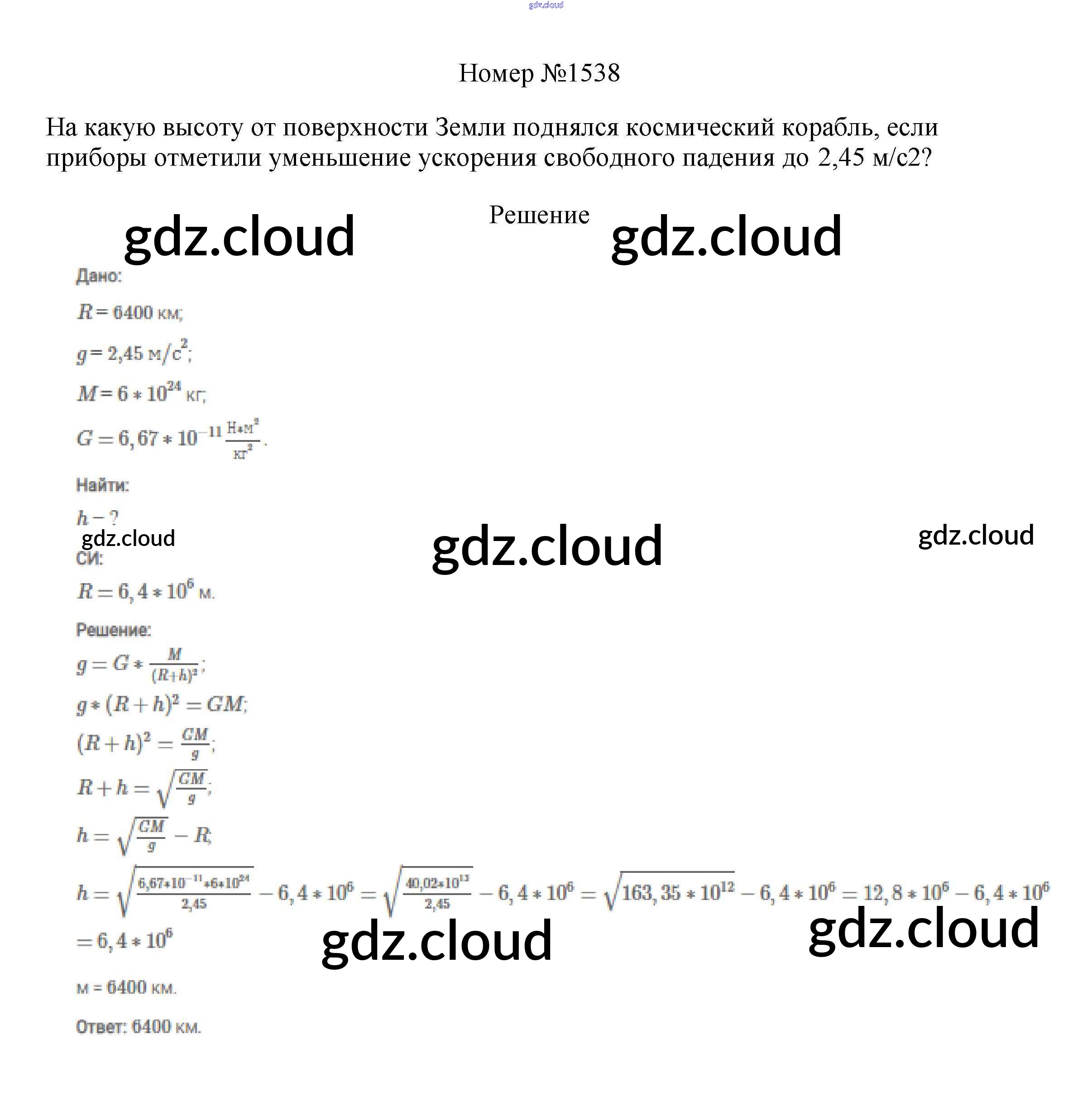 Ответ на задание 1538 Сборник вопросов и задач Физика за 7, 8, 9 (седьмой, восьмой, девятый) класс Марон, Позойский Вертикаль 2013