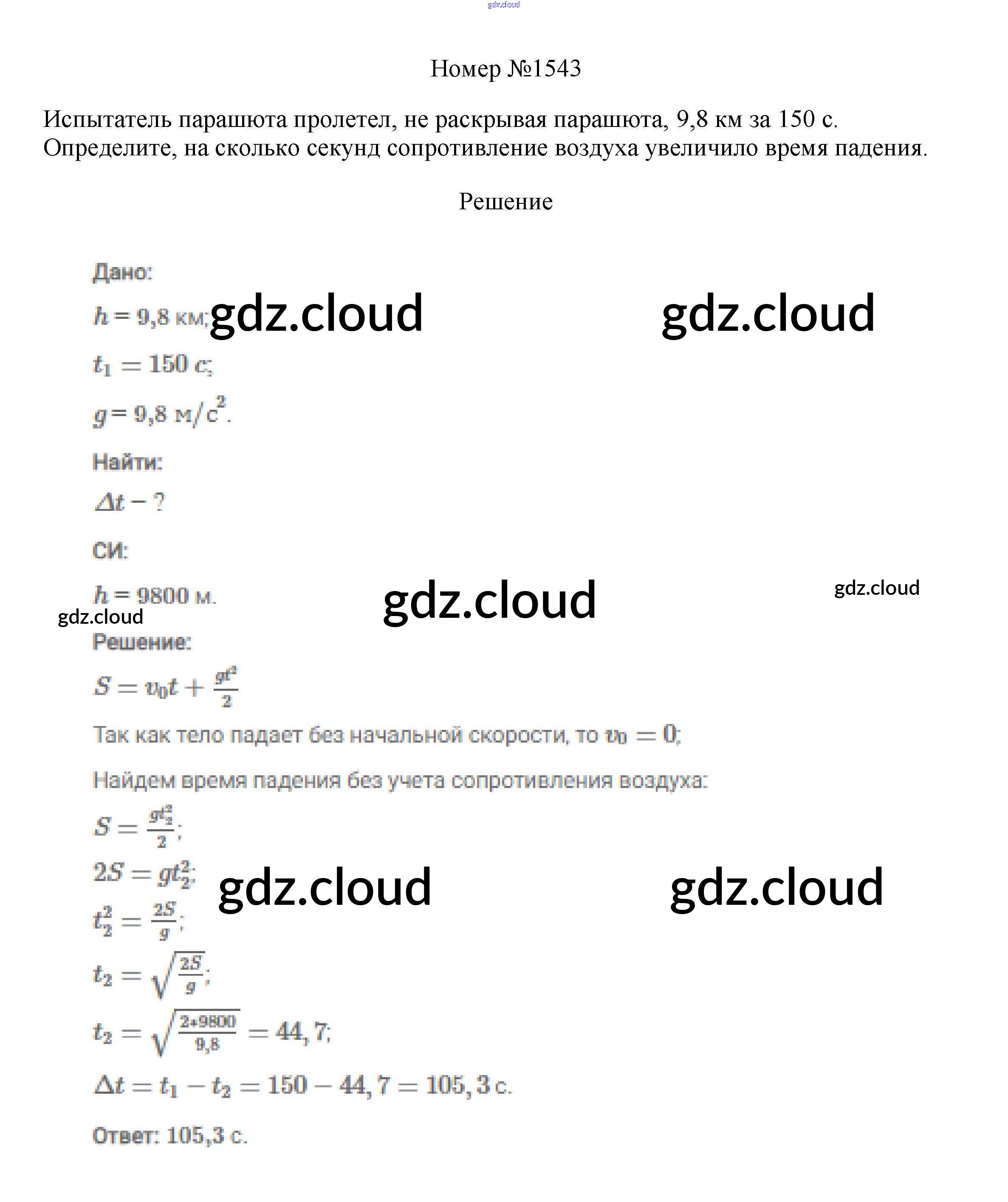 Ответ на задание 1543 Сборник вопросов и задач Физика за 7, 8, 9 (седьмой, восьмой, девятый) класс Марон, Позойский Вертикаль 2013