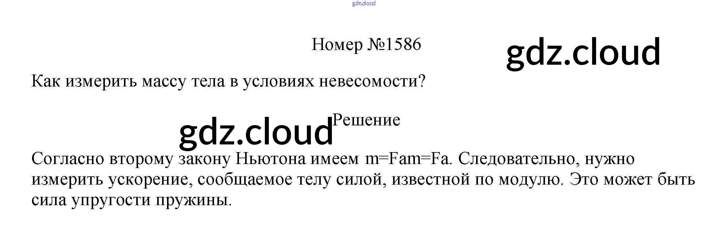 Ответ на задание 1586 Сборник вопросов и задач Физика за 7, 8, 9 (седьмой, восьмой, девятый) класс Марон, Позойский Вертикаль 2013