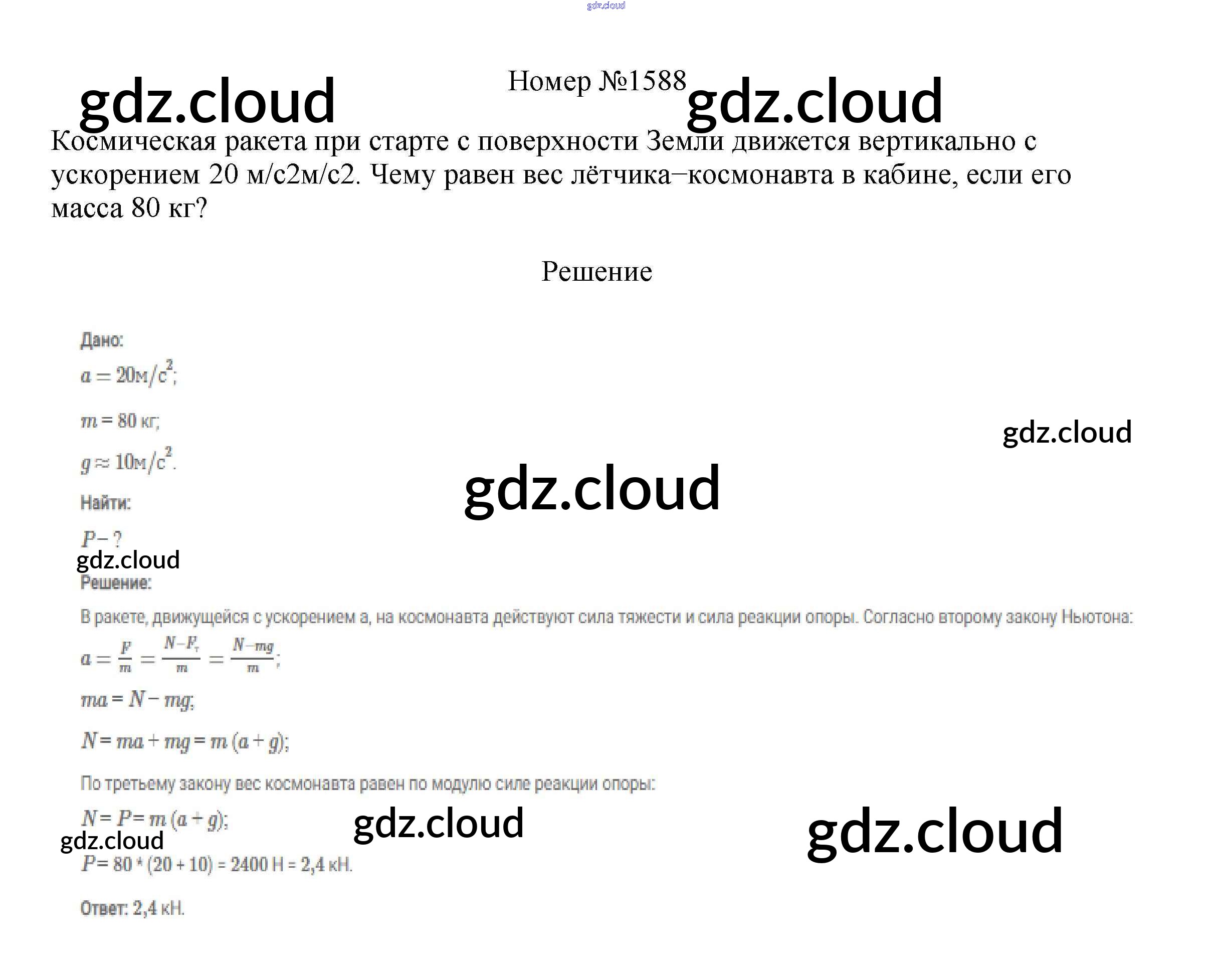 Ответ на задание 1588 Сборник вопросов и задач Физика за 7, 8, 9 (седьмой, восьмой, девятый) класс Марон, Позойский Вертикаль 2013