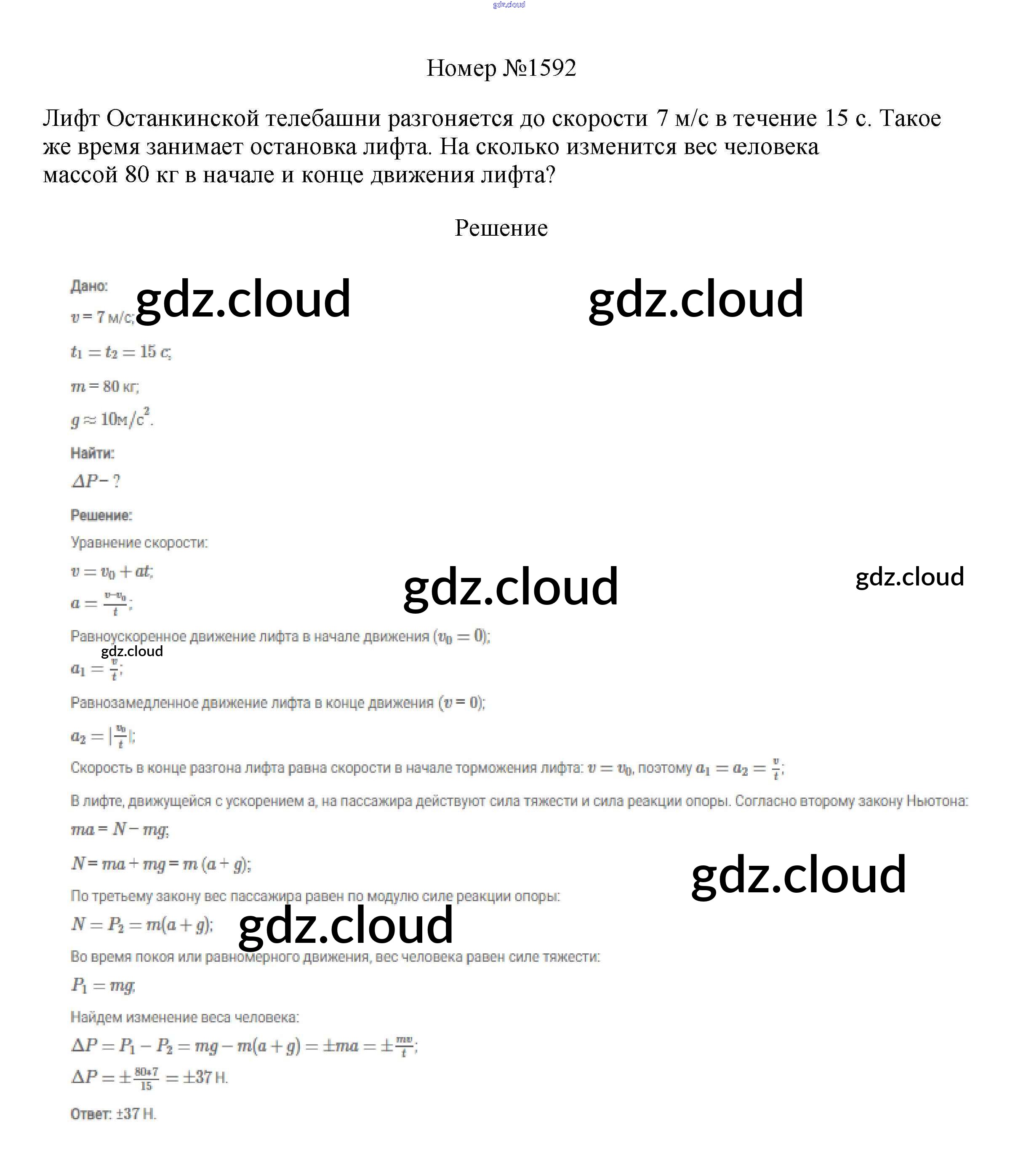 Ответ на задание 1592 Сборник вопросов и задач Физика за 7, 8, 9 (седьмой, восьмой, девятый) класс Марон, Позойский Вертикаль 2013