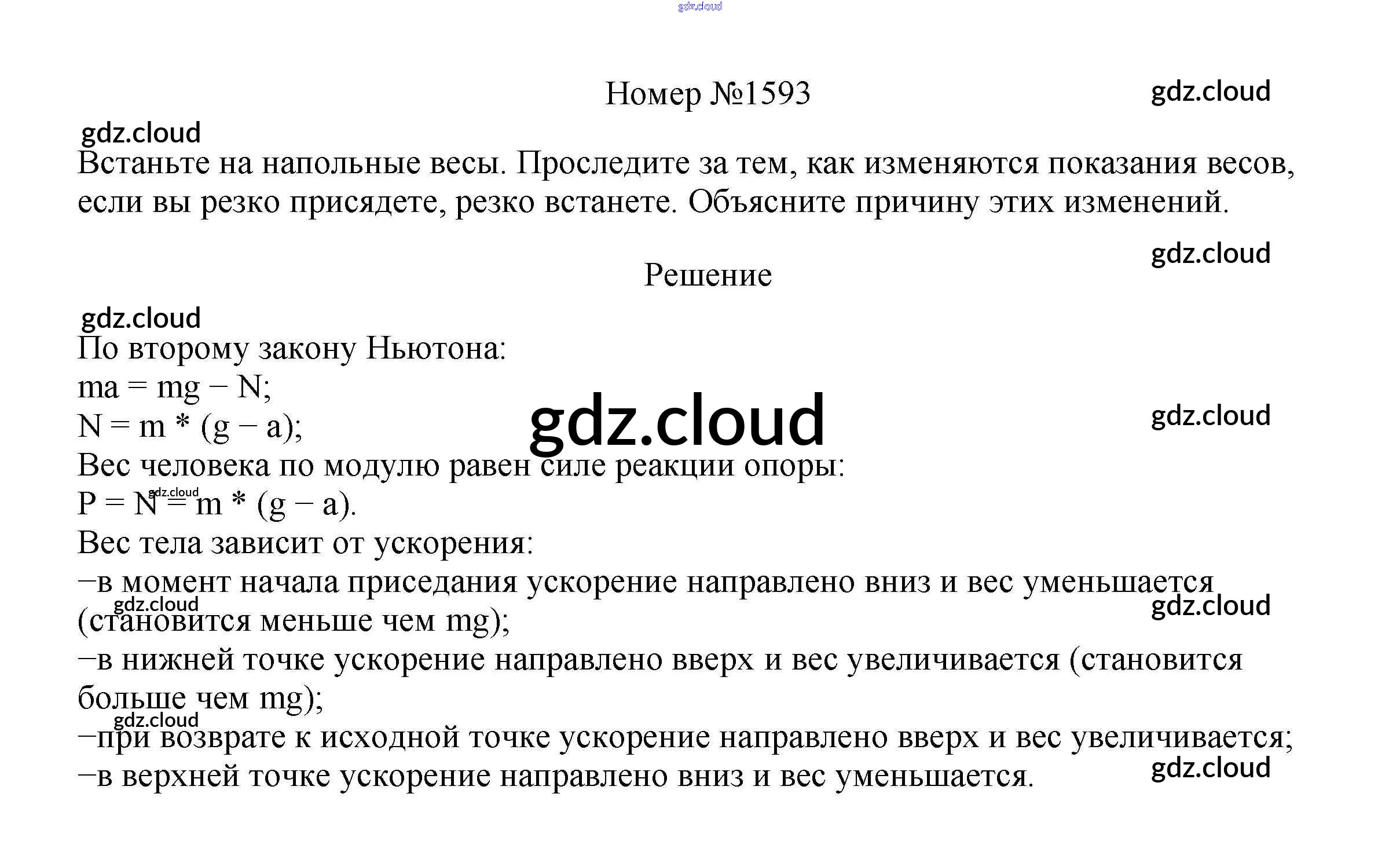 Ответ на задание 1593 Сборник вопросов и задач Физика за 7, 8, 9 (седьмой, восьмой, девятый) класс Марон, Позойский Вертикаль 2013