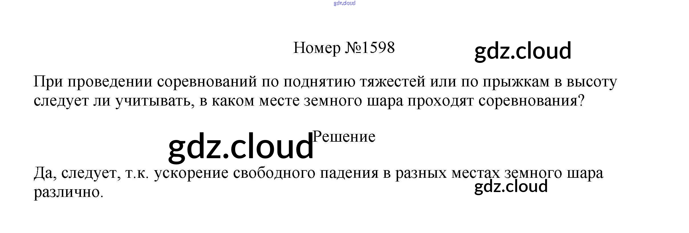 Ответ на задание 1598 Сборник вопросов и задач Физика за 7, 8, 9 (седьмой, восьмой, девятый) класс Марон, Позойский Вертикаль 2013