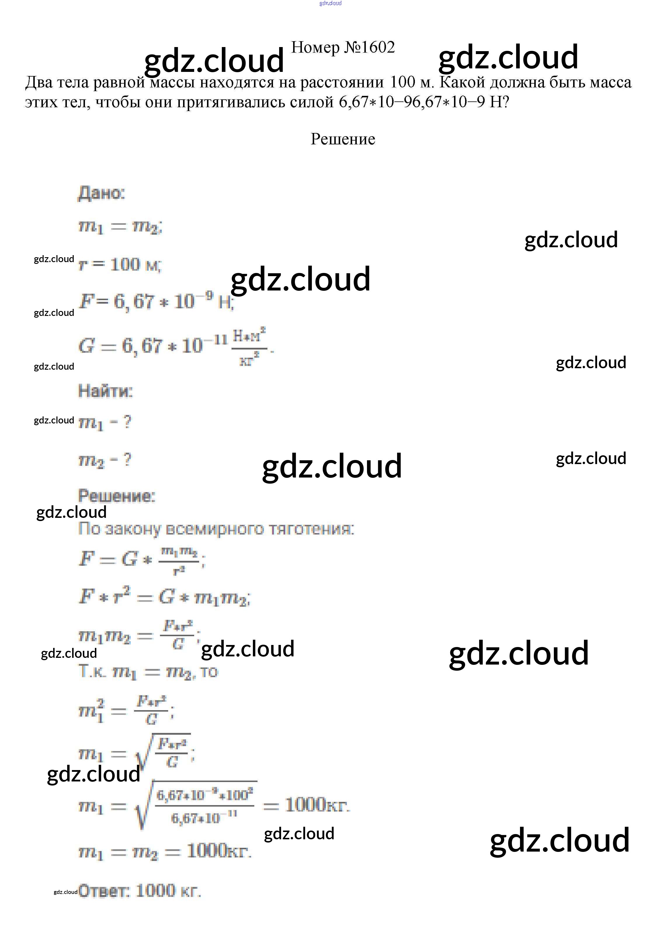 Ответ на задание 1602 Сборник вопросов и задач Физика за 7, 8, 9 (седьмой, восьмой, девятый) класс Марон, Позойский Вертикаль 2013