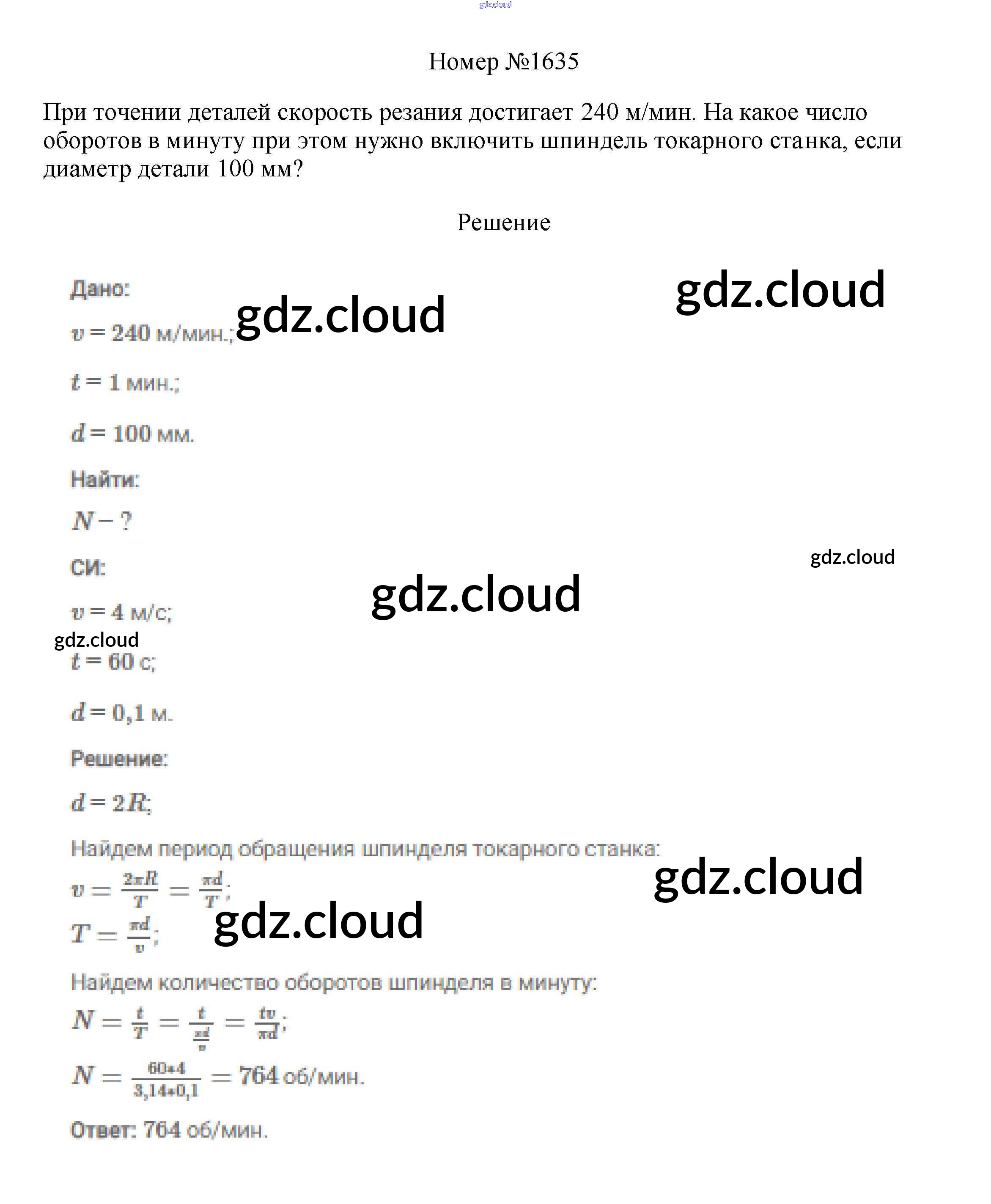 Ответ на задание 1635 Сборник вопросов и задач Физика за 7, 8, 9 (седьмой, восьмой, девятый) класс Марон, Позойский Вертикаль 2013