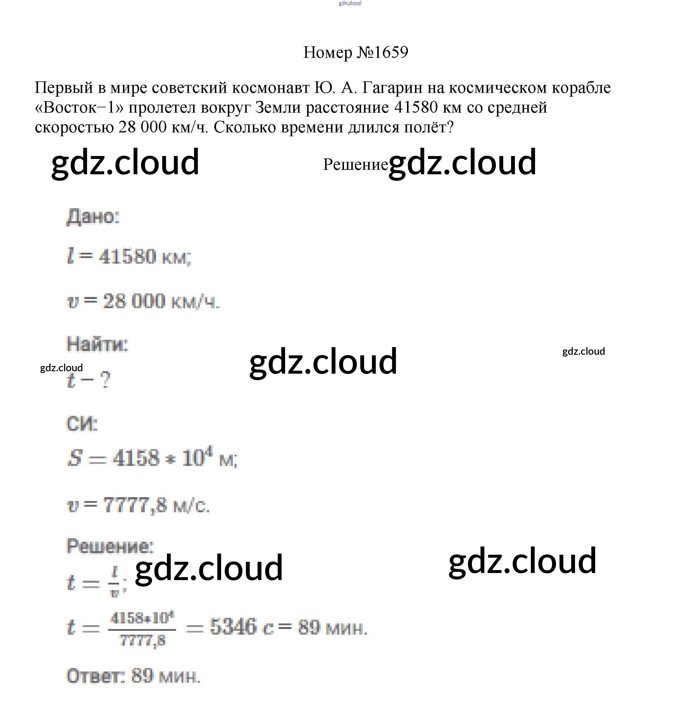 Ответ на задание 1659 Сборник вопросов и задач Физика за 7, 8, 9 (седьмой, восьмой, девятый) класс Марон, Позойский Вертикаль 2013